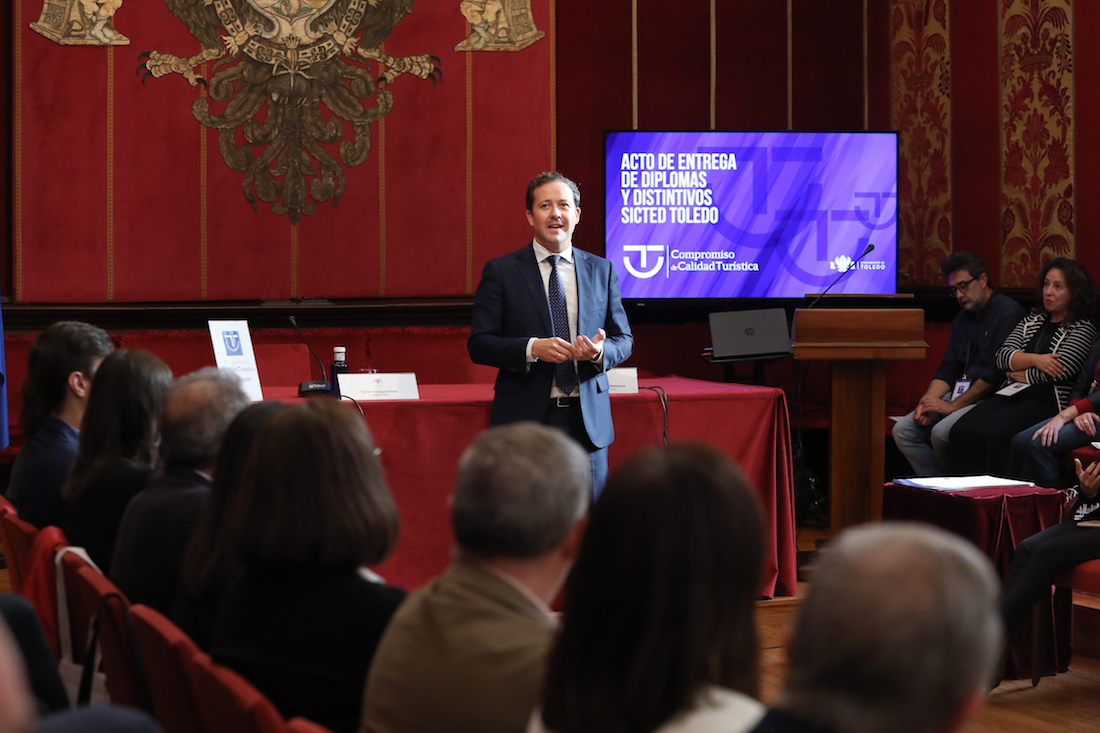 Toledo destaca su compromiso con el sector turístico en la entrega de reconocimientos SICTED en la Sala Capitular, para...