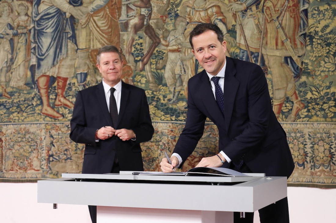 El alcalde de Toledo, Carlos Velázquez, ha firmado hoy junto al presidente de Castilla-La Mancha, Emiliano...