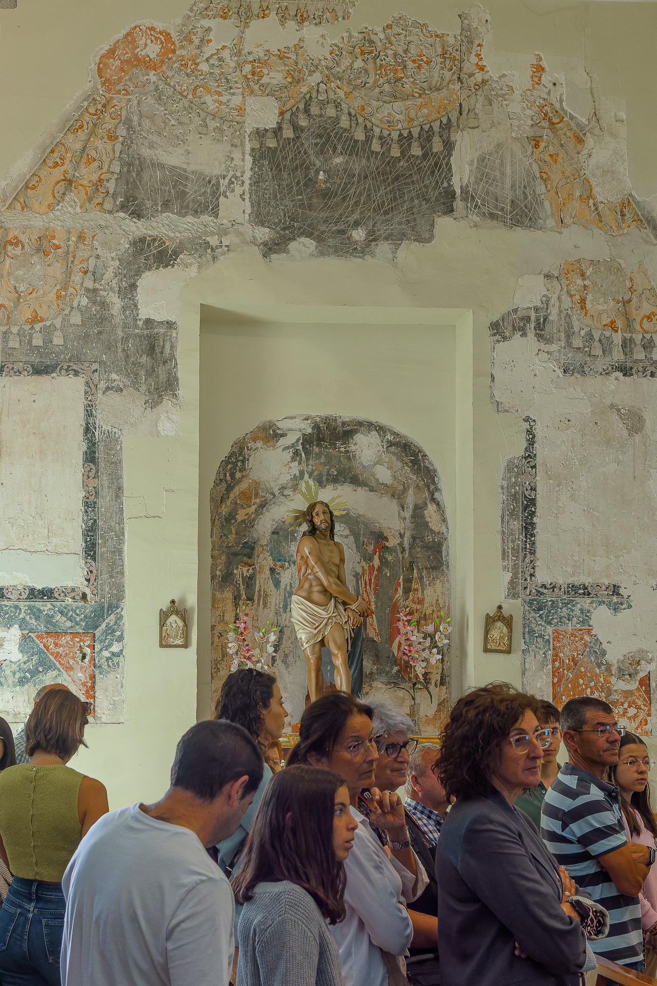 La visita comenzaba en el centro del pueblo de la mano de Atenea que, tras un recorrido por las calles comentando la historia del pueblo, nos llevaba hasta la iglesia de San Pedro y San Pablo, una verdadera joya del patrimonio de la localidad, y en donde pudimos observar el tesoro artístico más importante que alberga la iglesia, en concreto, un óleo sobre tabla de La Piedad, obra del célebre pintor del siglo XVI Luis de Morales, apodado «el divino».