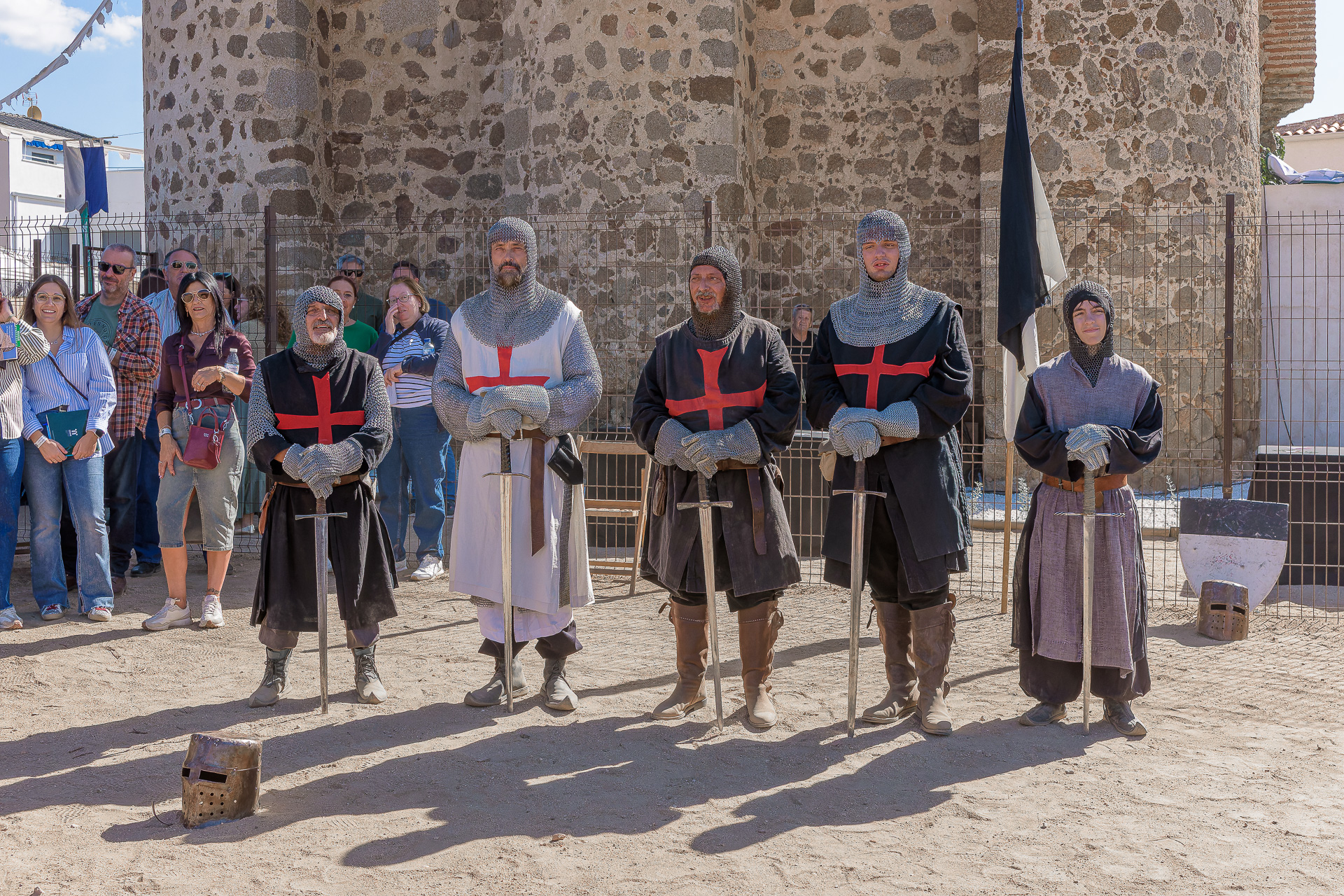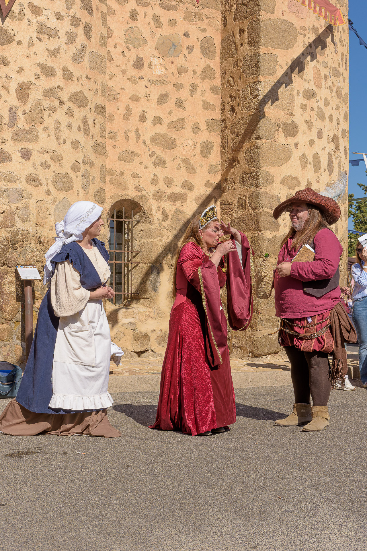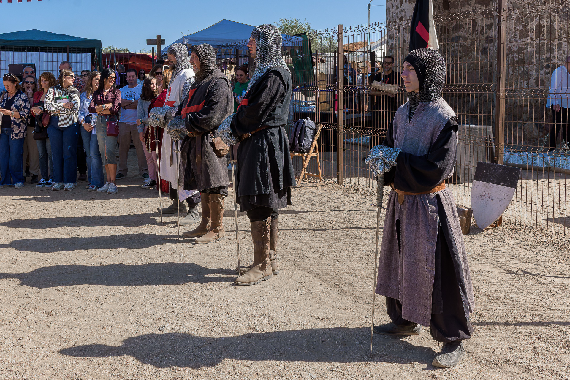 Desde la iglesia nos encaminamos al castillo, que constituye el elemento patrimonial más significativo de la villa y una pieza de notable singularidad dentro de la arquitectura militar medieval de la península. en la puerta del castillo sería en donde aparecería un curioso y divertido personaje llamado «Crispín de malcuerno», bufón del rey y encargado de darnos a conocer la historia del Castillo y del poeta y cortesano Lope de Zúñiga y de su esposa, Mencía de Guzmán, ilustres propietarios del castillo. Lope de Zúñiga sería el siguiente personaje en aparecer en escena en el interior del torreón del Castillo, antes de pasar al que fue el patio de armas en donde la Asociación Baucan nos realizó un fantástica exhibición de lucha medieval.
