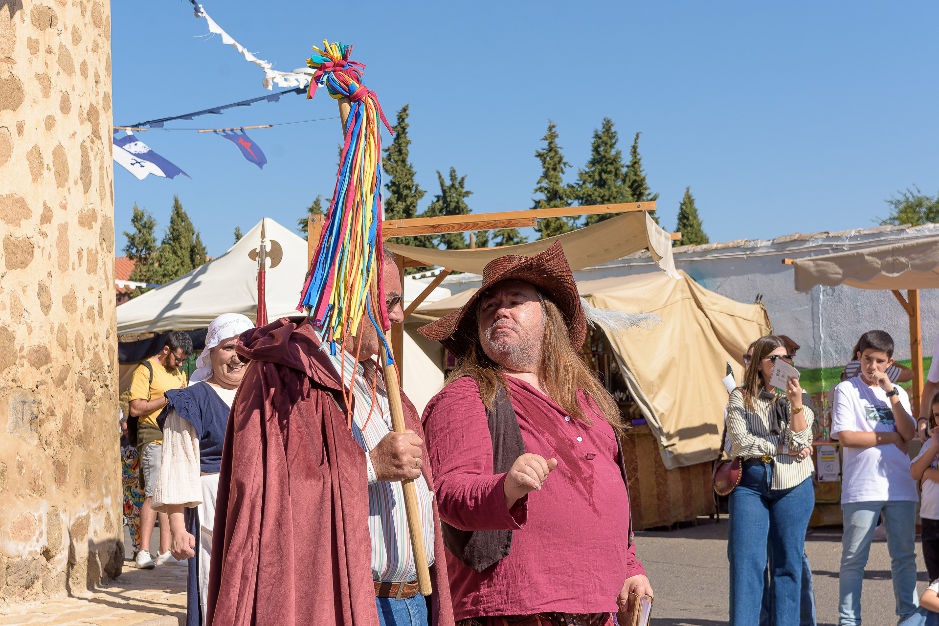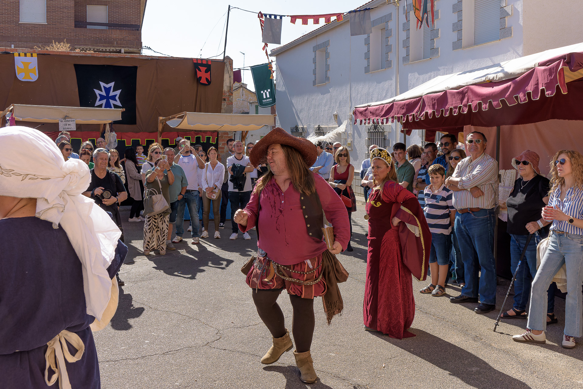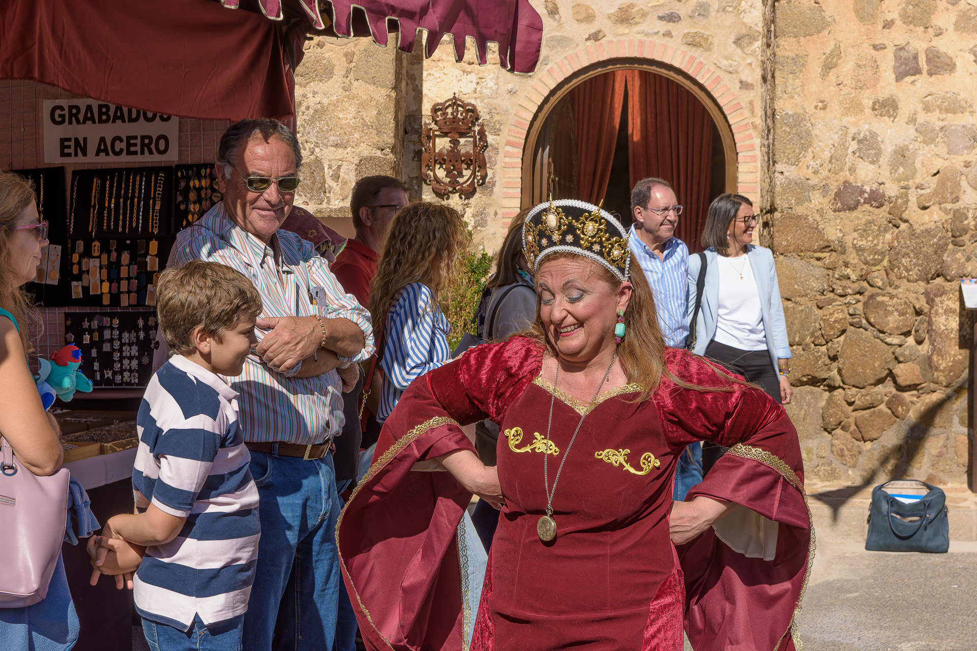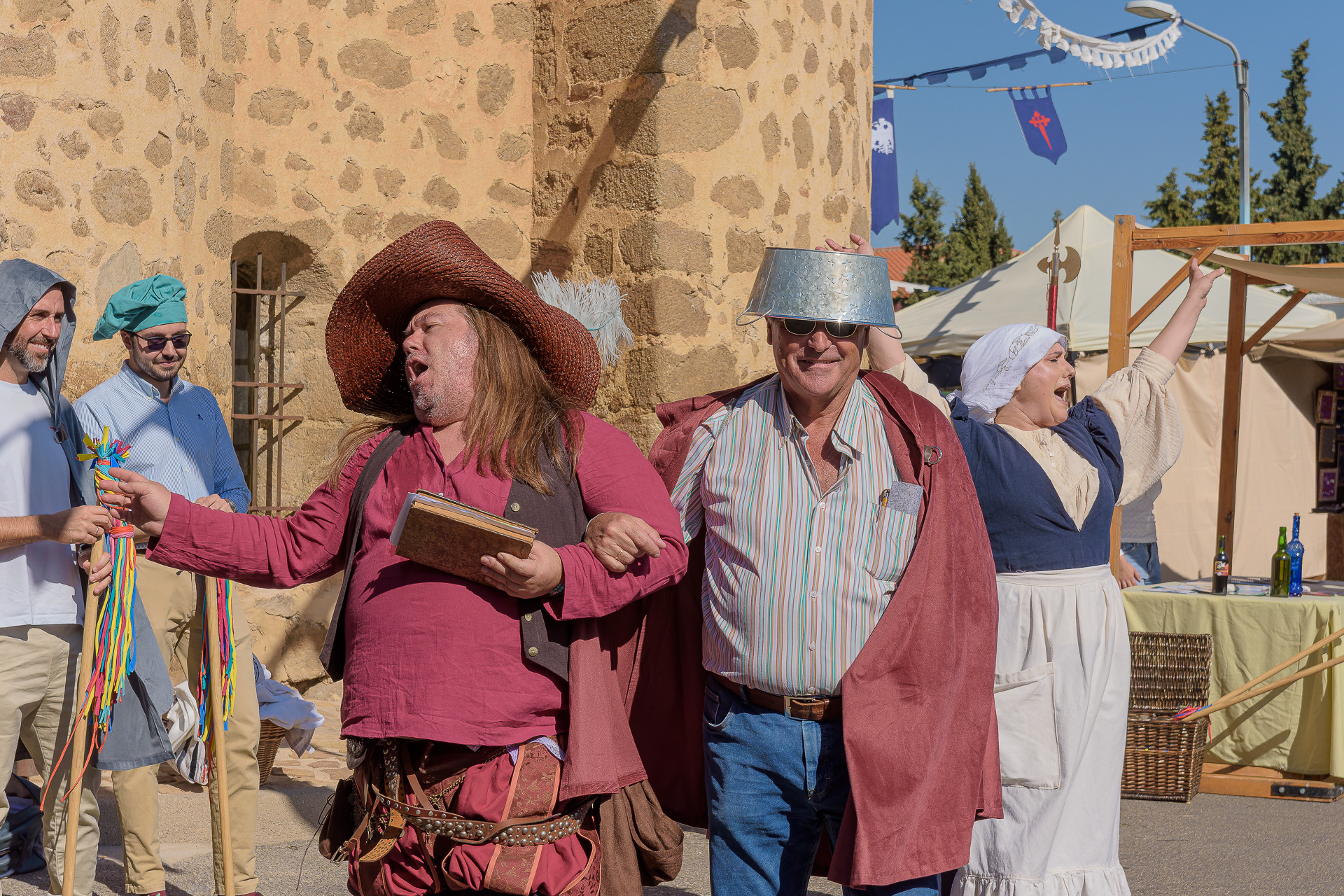 Desde la iglesia nos encaminamos al castillo, que constituye el elemento patrimonial más significativo de la villa y una pieza de notable singularidad dentro de la arquitectura militar medieval de la península. en la puerta del castillo sería en donde aparecería un curioso y divertido personaje llamado «Crispín de malcuerno», bufón del rey y encargado de darnos a conocer la historia del Castillo y del poeta y cortesano Lope de Zúñiga y de su esposa, Mencía de Guzmán, ilustres propietarios del castillo. Lope de Zúñiga sería el siguiente personaje en aparecer en escena en el interior del torreón del Castillo, antes de pasar al que fue el patio de armas en donde la Asociación Baucan nos realizó un fantástica exhibición de lucha medieval.