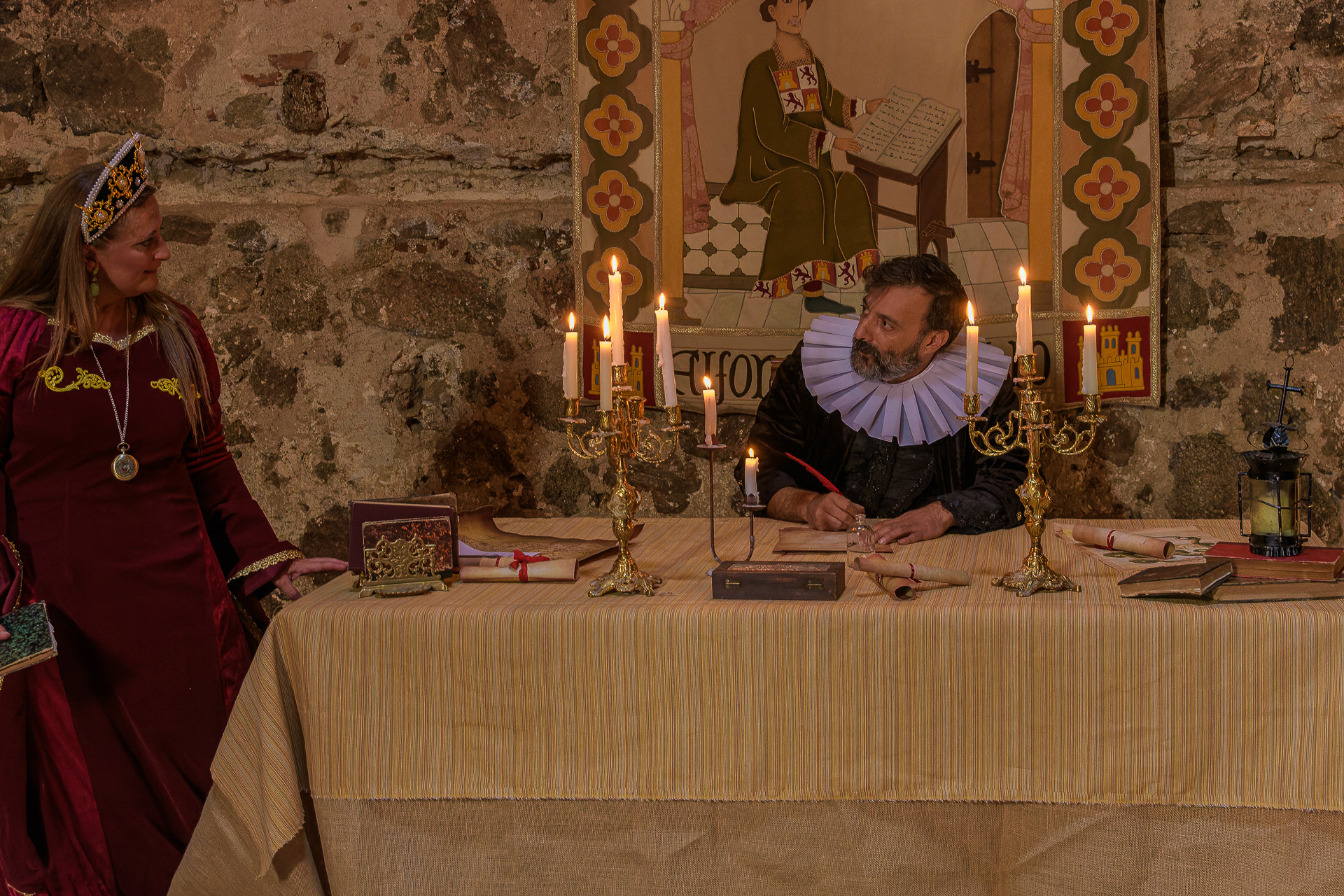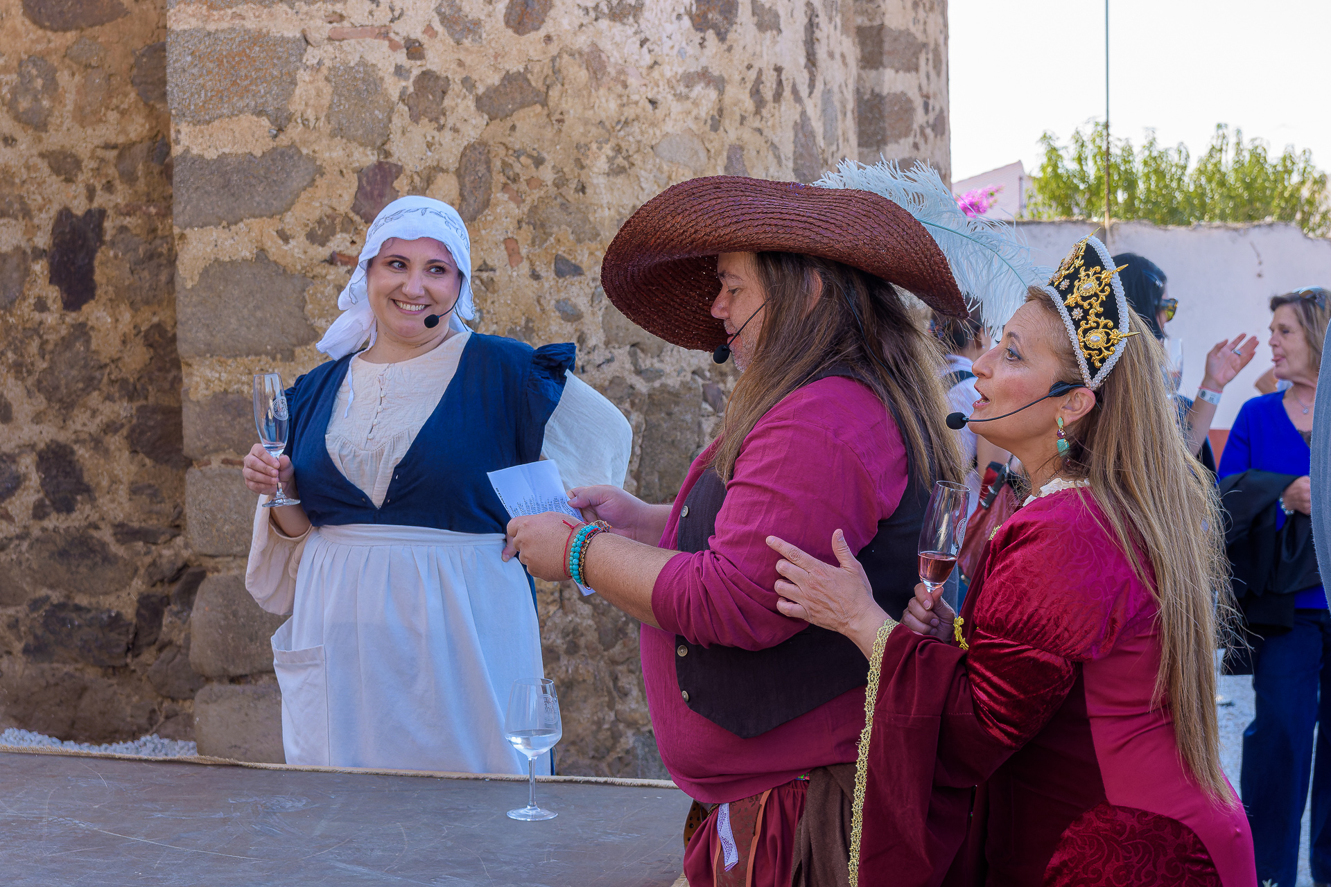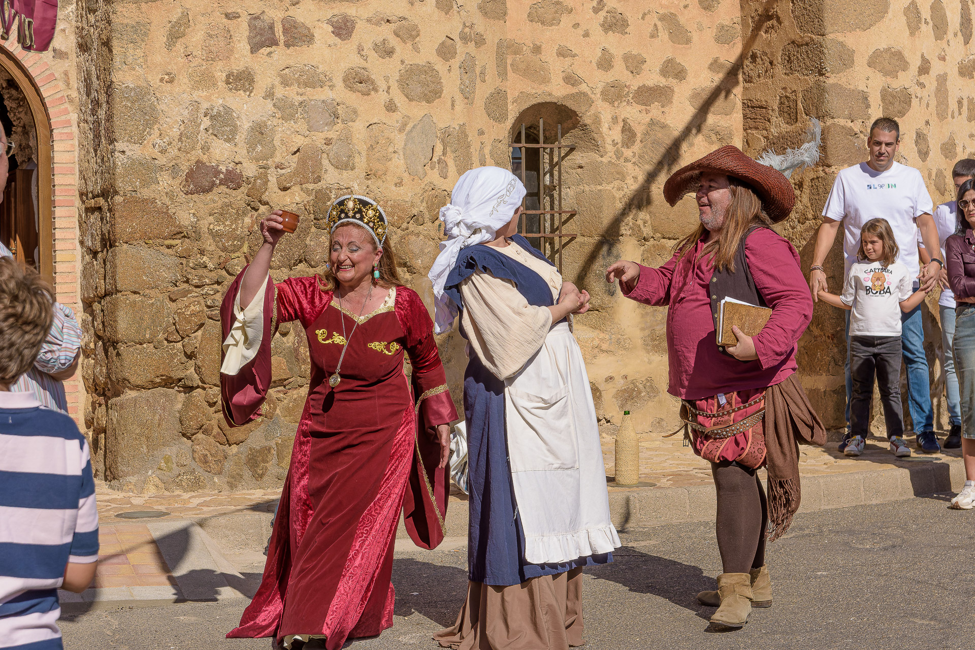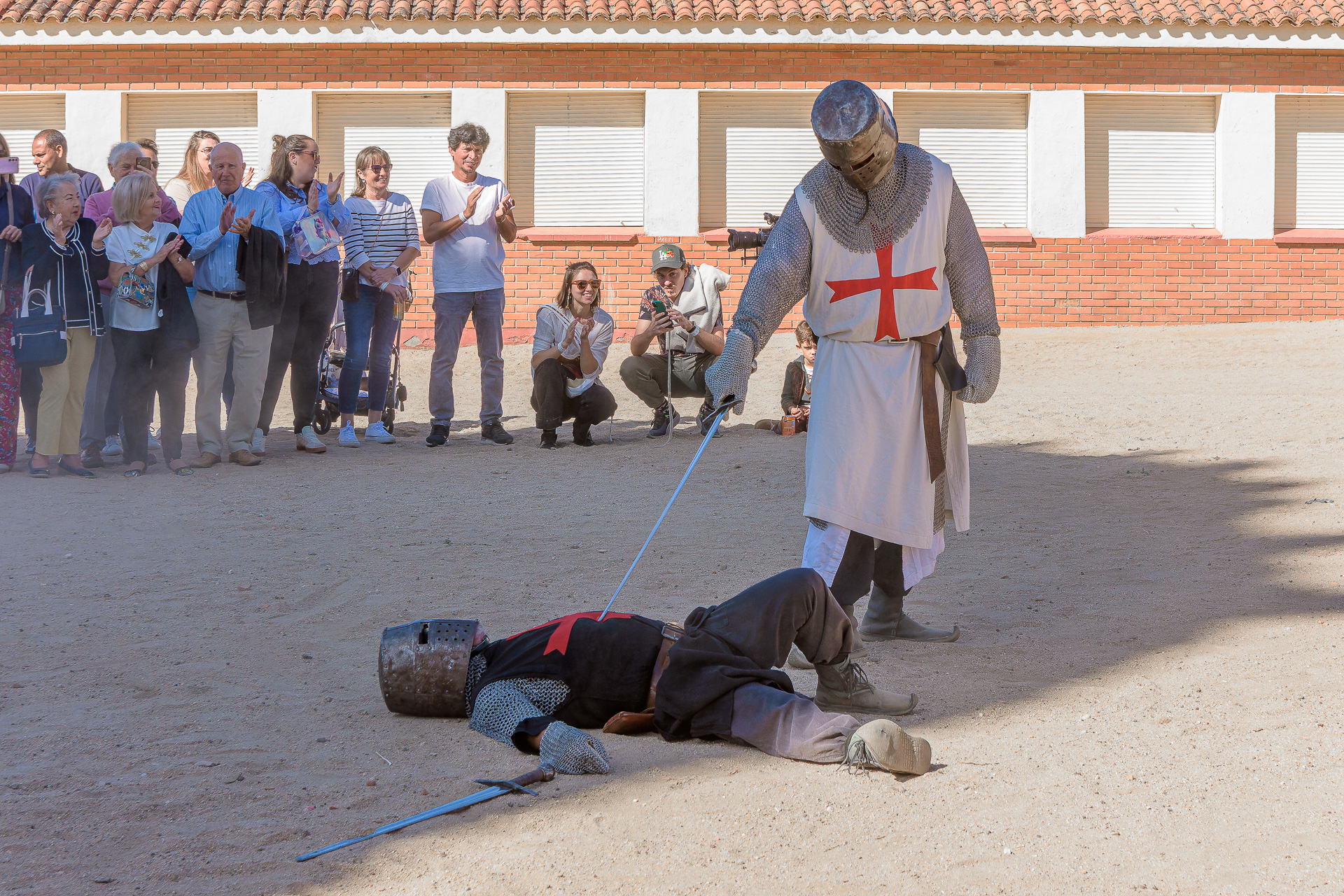 En esta ocasión había diferentes itinerarios y actividades de las que, nosotros, nos hemos decantado por la visita teatralizada, que como en ocasiones anteriores, estuvo protagonizada por el Grupo de Teatro Atenea, que como siempre, hicieron partícipe al público de su magnífica teatralización. En este caso, tras la visita teatralizada, la Asociación Baucan de Toledo realizó una estupenda exhibición de lucha medieval para todos los asistentes, finalizando la visita con una cata de vinos teatralizada junto al castillo realizada por Bodegas Garva de Toledo, que contó con el maridaje del Complejo Luna Jamaica de Polán y por supuesto, la teatralización del Grupo de Teatro Atenea.