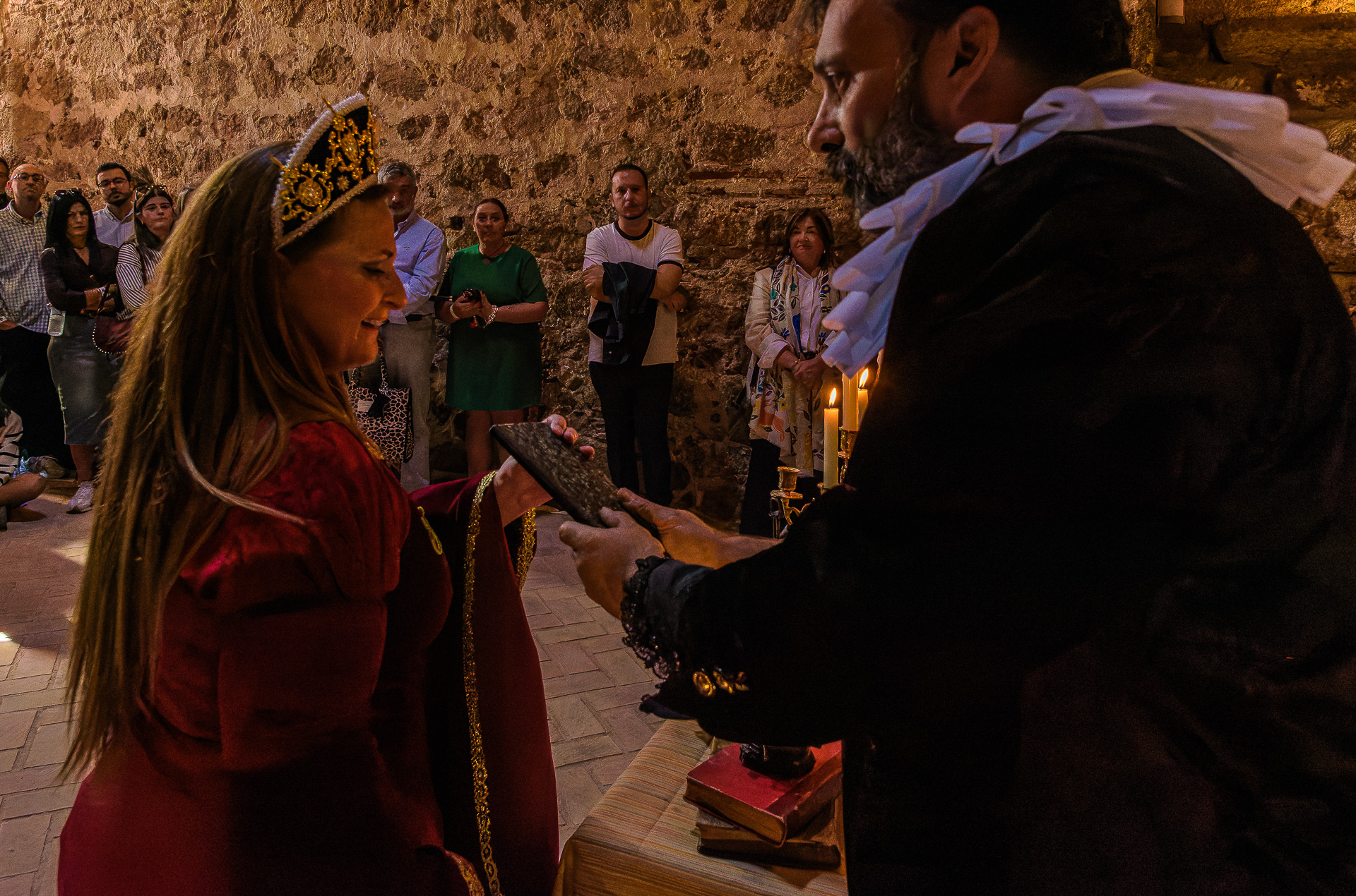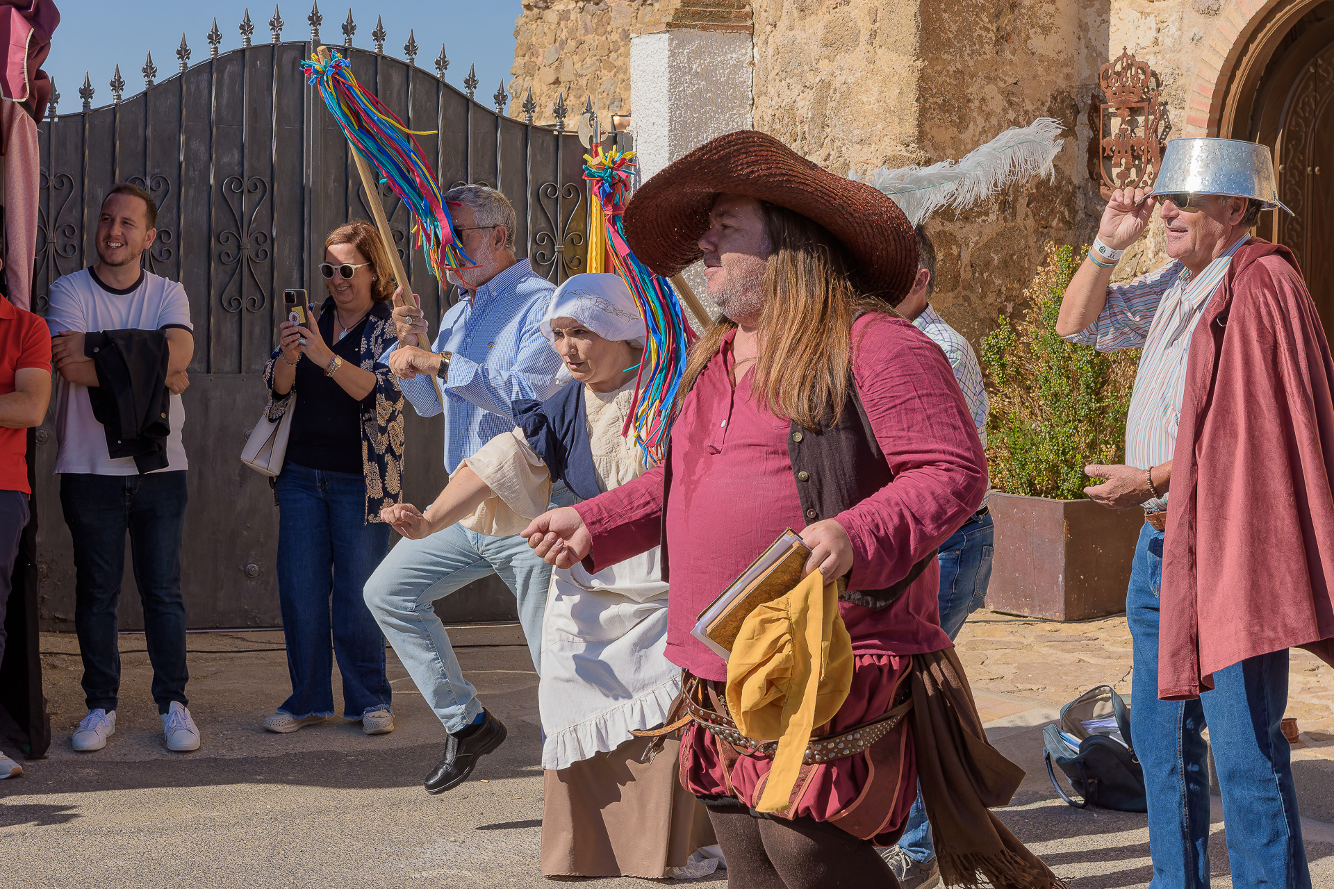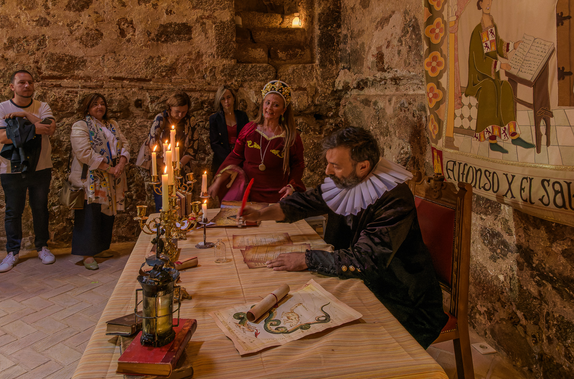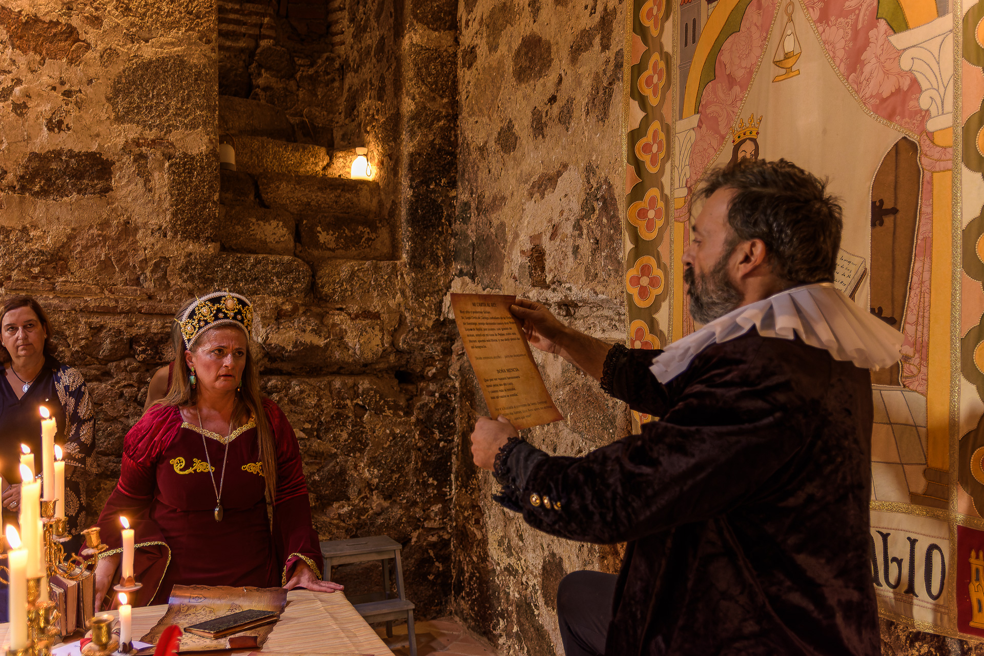 En esta ocasión había diferentes itinerarios y actividades de las que, nosotros, nos hemos decantado por la visita teatralizada, que como en ocasiones anteriores, estuvo protagonizada por el Grupo de Teatro Atenea, que como siempre, hicieron partícipe al público de su magnífica teatralización. En este caso, tras la visita teatralizada, la Asociación Baucan de Toledo realizó una estupenda exhibición de lucha medieval para todos los asistentes, finalizando la visita con una cata de vinos teatralizada junto al castillo realizada por Bodegas Garva de Toledo, que contó con el maridaje del Complejo Luna Jamaica de Polán y por supuesto, la teatralización del Grupo de Teatro Atenea.