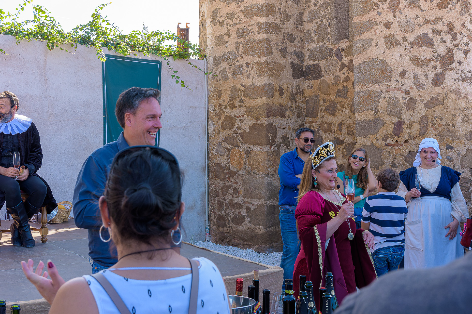 Finalizaba la visita con la magnífica cata presidida por Lope de Zúñiga y su esposa, Mencía de Guzmán en la que disfrutamos de una deliciosa cata de vinos.
