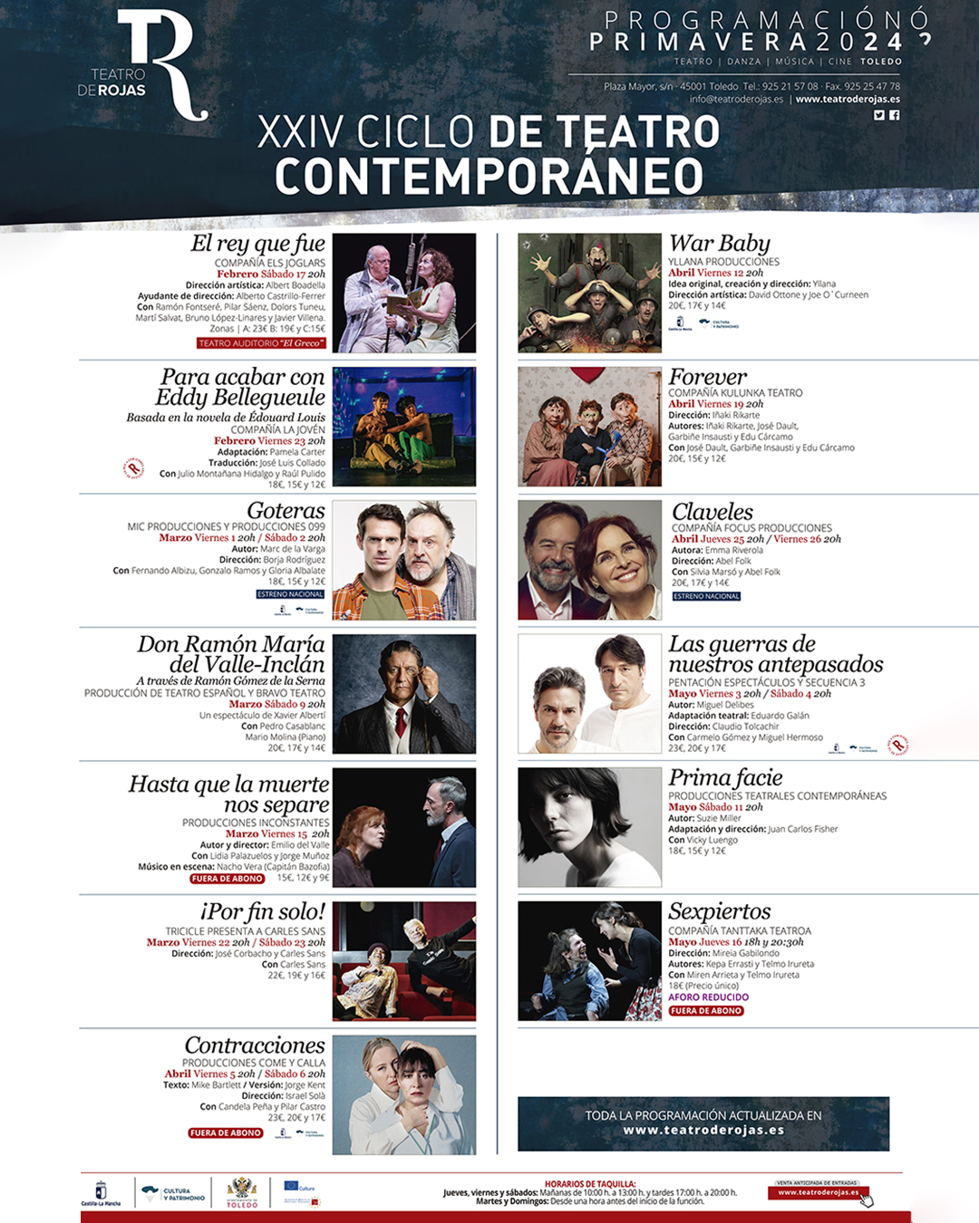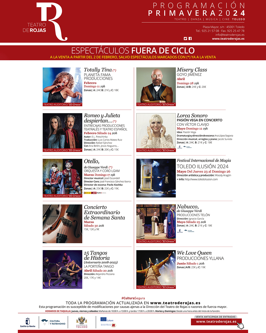 Se presentan en Toledo cerca de 40 espectáculos de todo tipo y para todos los públicos llevados a cabo tanto por compañías muy consagradas como por artistas toledanos en los cuatro grupos de actividad en los que se ha dividido el ciclo de la temporada 2024 del  Teatro de Rojas.