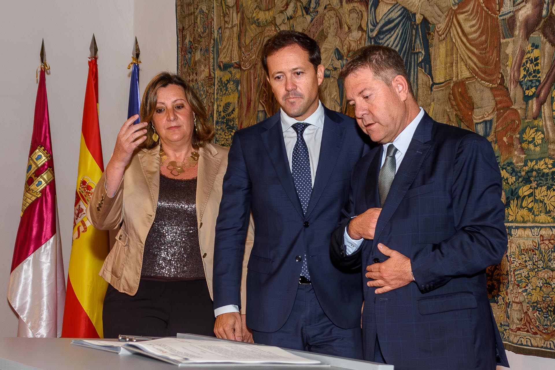 En un acto celebrado ayer en el Palacio de Fuensalida, el presidente de Castilla-La Mancha, Emiliano García-Page, ha presidido la firma del convenio de colaboración entre el Ejecutivo autonómico y el Ayuntamiento de Toledo, que han firmado la consejera de Economía, Empresas y Empleo, Patricia Franco y el alcalde de Toledo, Carlos Velázquez, para la construcción de la Ciudad del Cine de Castilla-La Mancha en la capital regional.