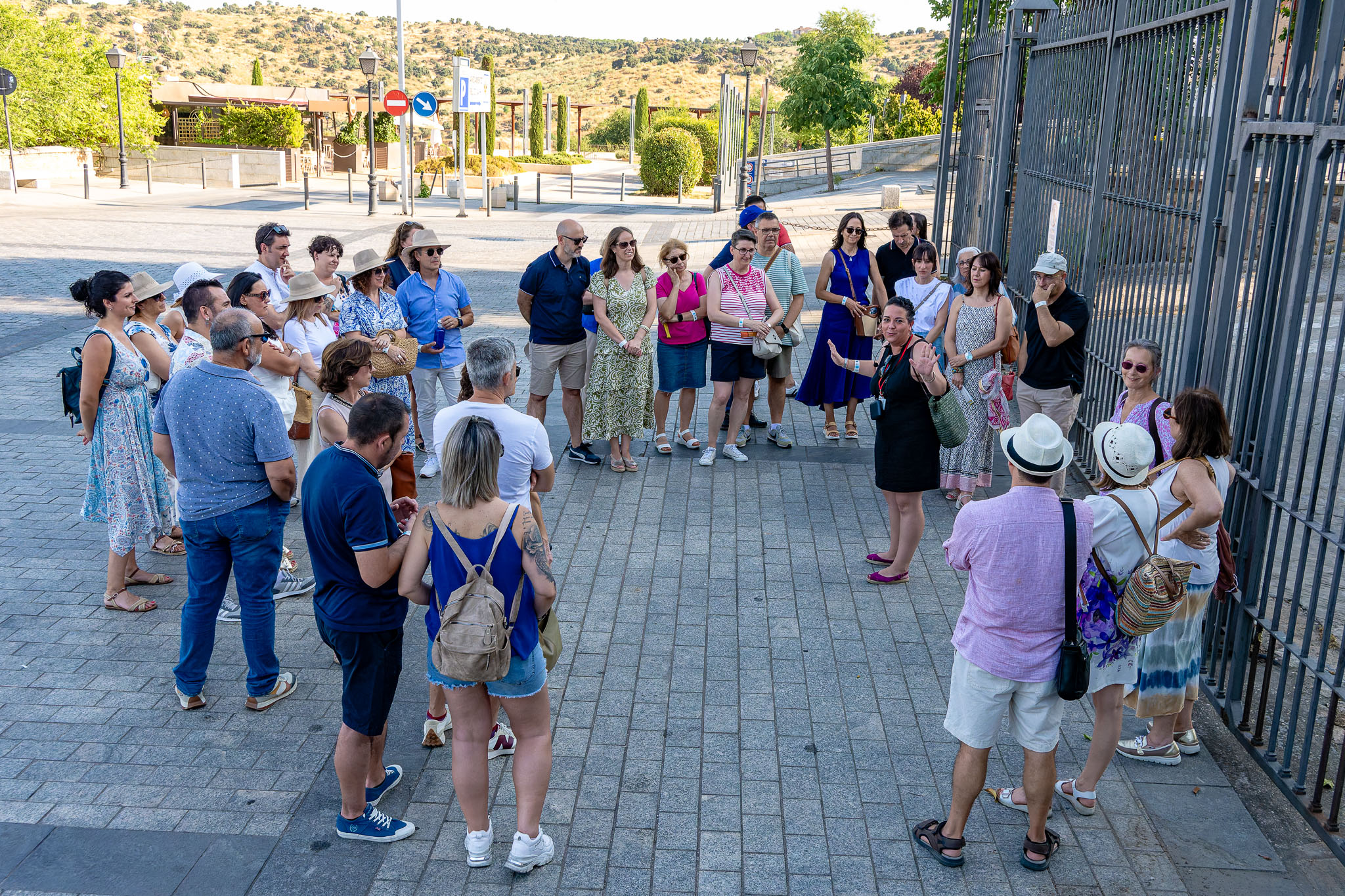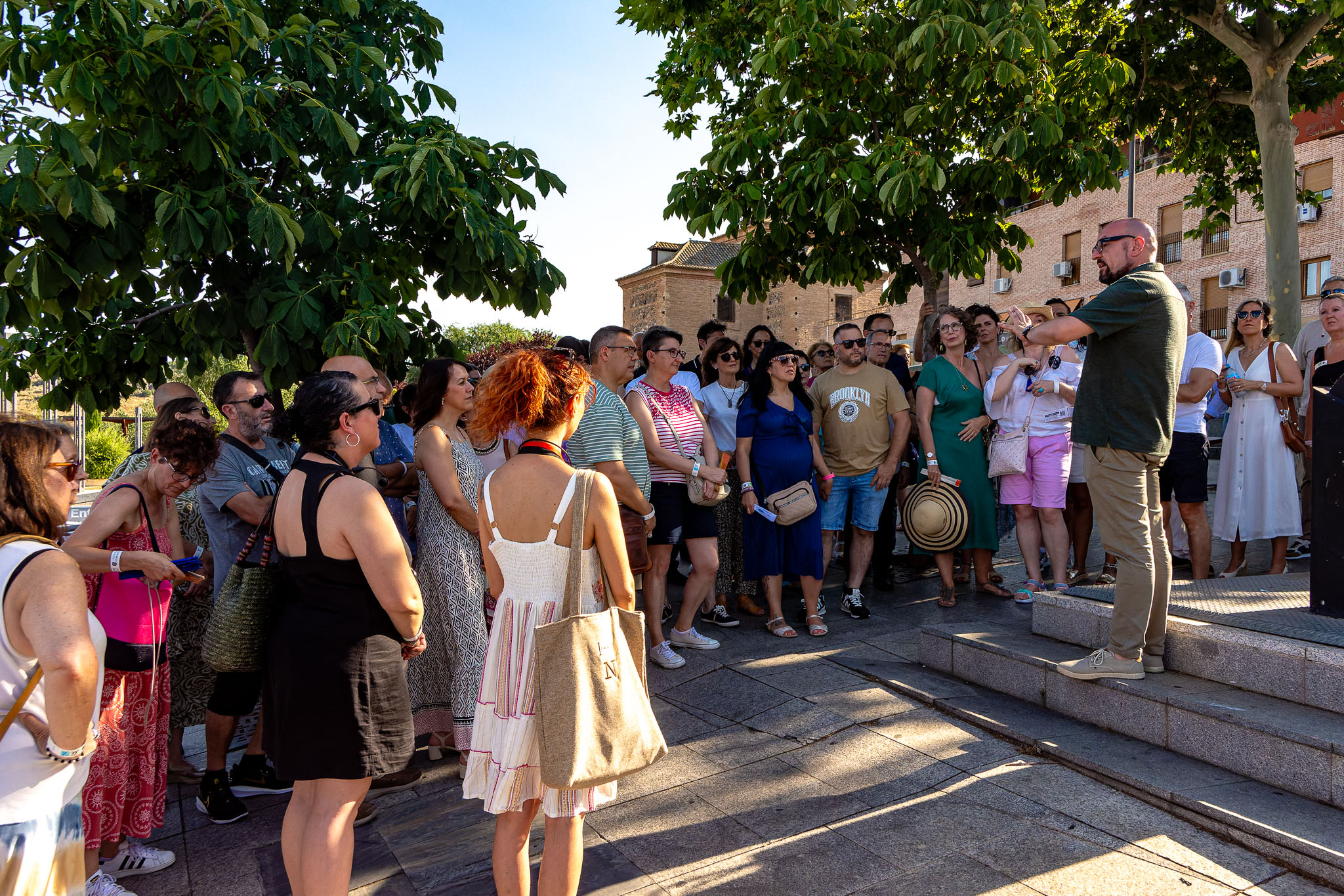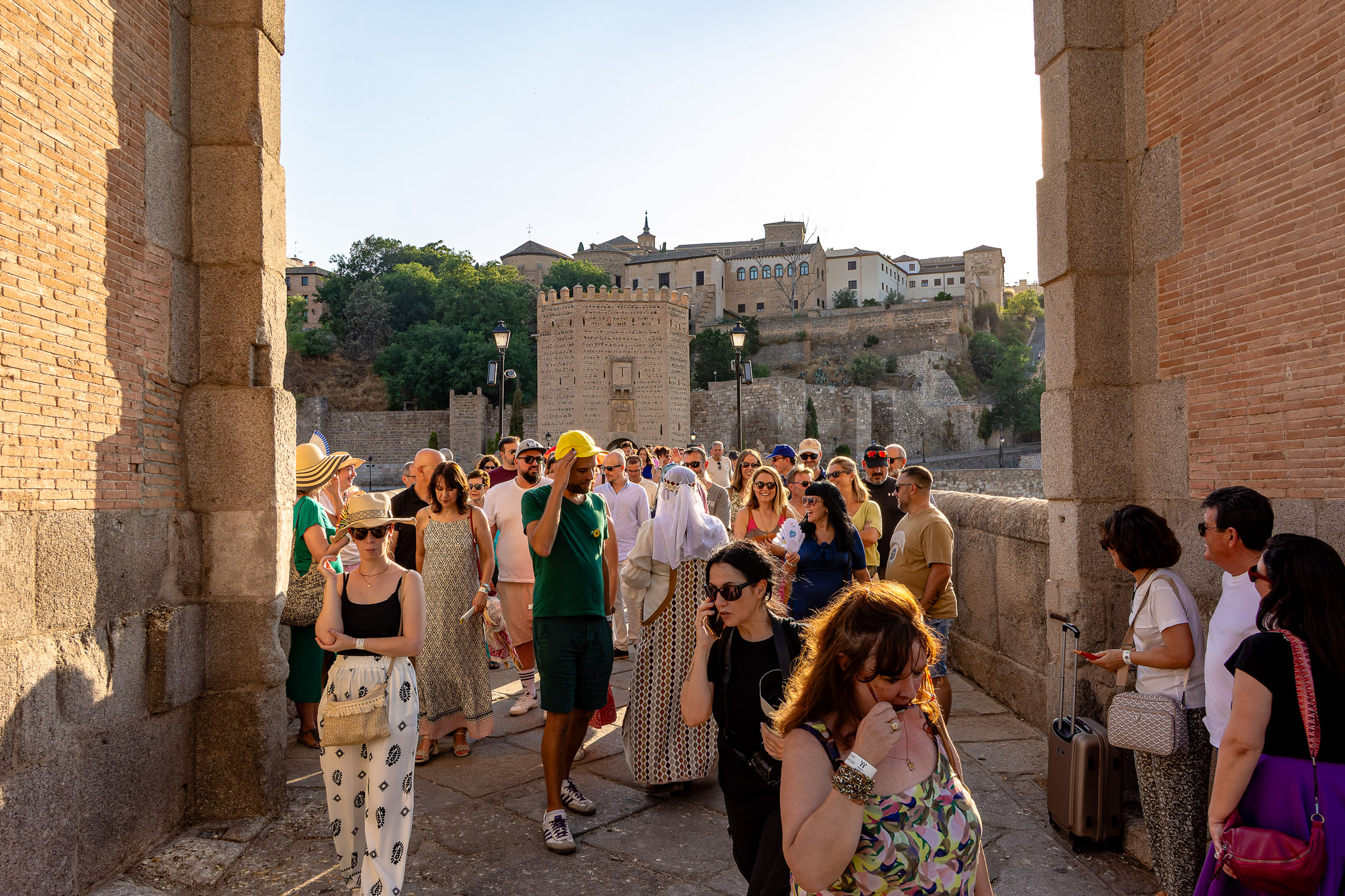 El primer turno, que comenzó a primera hora de la tarde, congregó a un grupo de aproximadamente 100 personas. Los asistentes disfrutamos de una visita guiada por los alrededores del Alcázar, acompañados por dos fantásticas guías turísticas hasta le puente de Alcántara.
