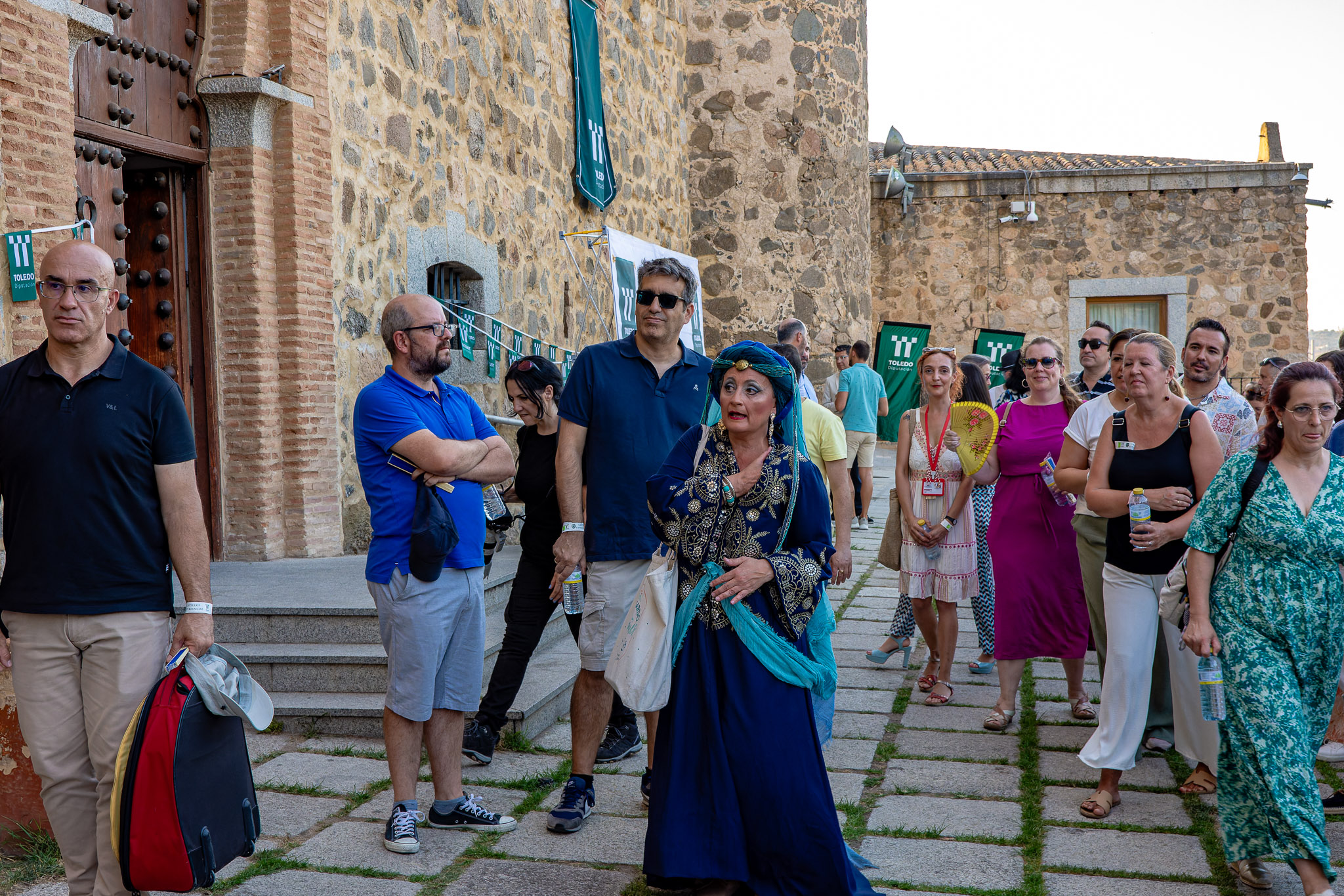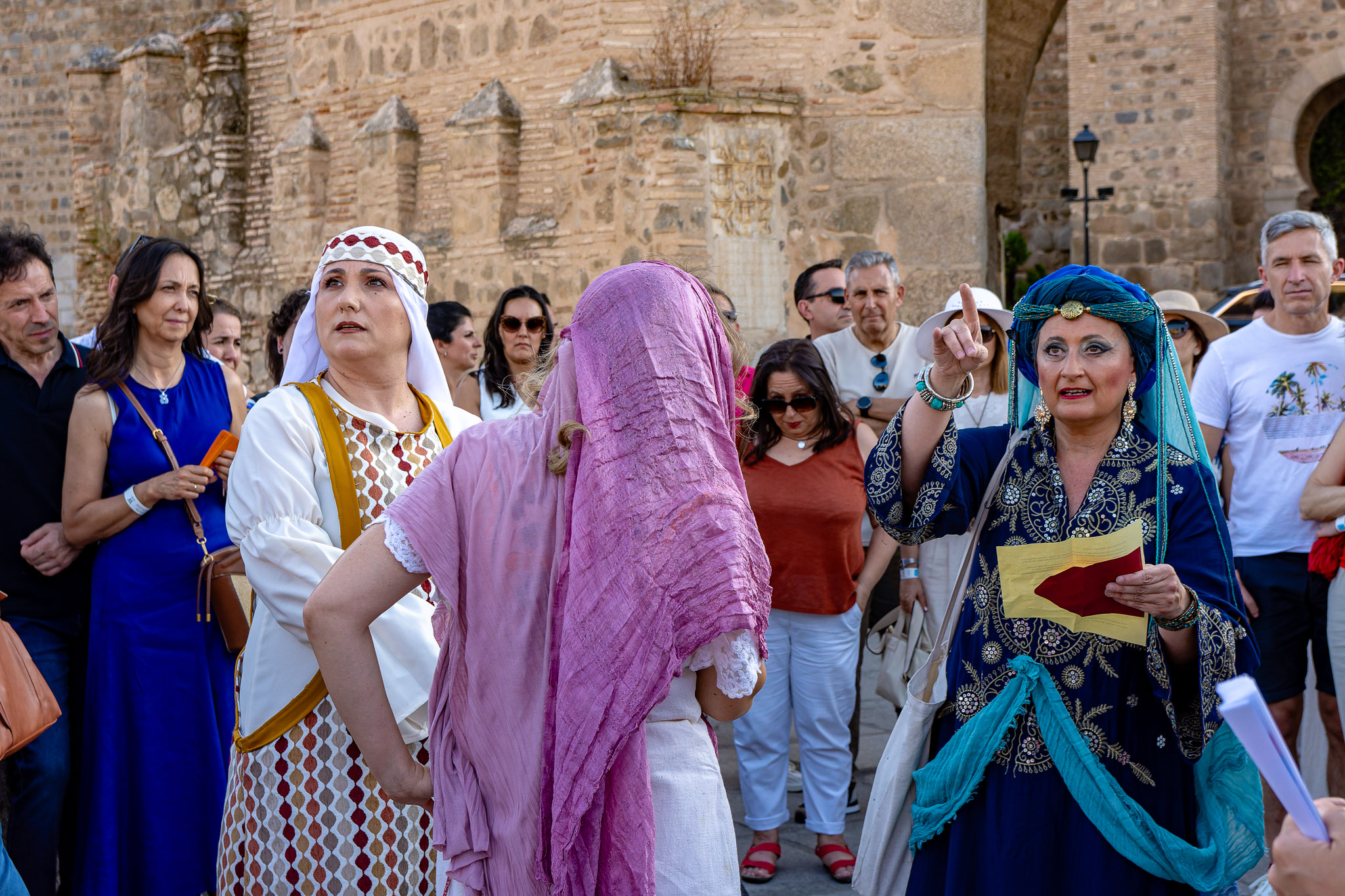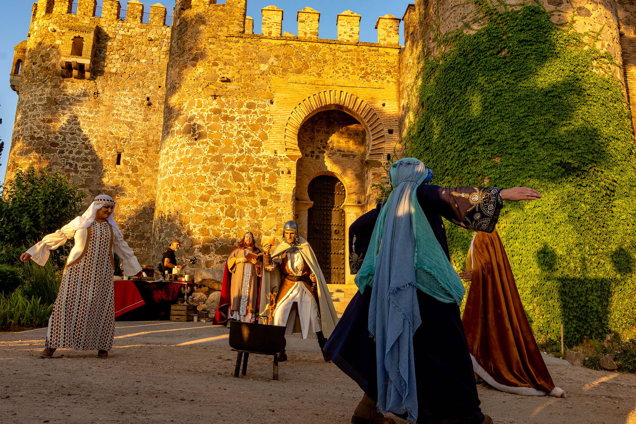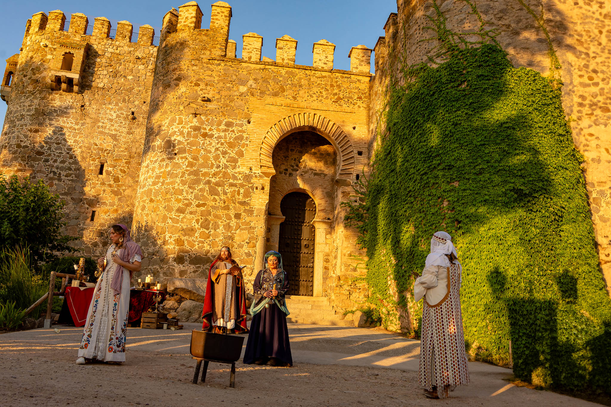En el puente daba comienzo la visita teatralizada, tres mujeres «Inés»; «Zaida» y «Raquel», qué, en la búsqueda de sus orígenes, nos llevaron de viaje por tres épocas diferentes, de la mano de tres reyes, Alfonso VI junto a Rodrigo Díaz de Vivar, El Cid, que pide justicia para sus hijas por las vilezas cometidas por los Infantes de Carrión; o la prohibida historia de amor de Alfonso VIII con la judía Raquel, «Rahel la Fermosa», junto a las aguas del Tajo; y Zaida, que junto a Alfonso X El sabio, echará al fuego los misterios que ofrece el castillo., nos llevaron, a través de sus historias, al Castillo de San Servando, una inmersión en la historia y las leyendas del castillo, de la mano de la Compañía de Teatro Atenea.
