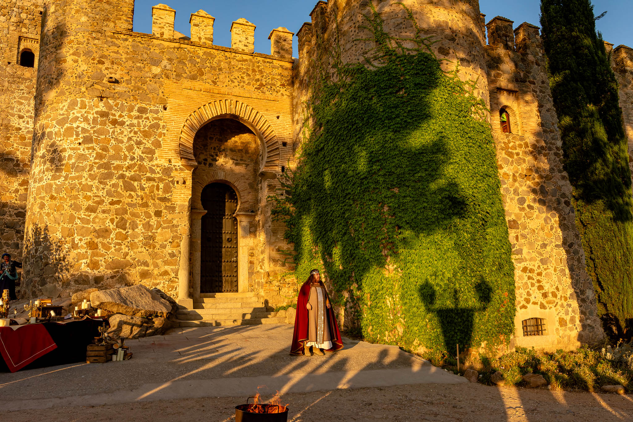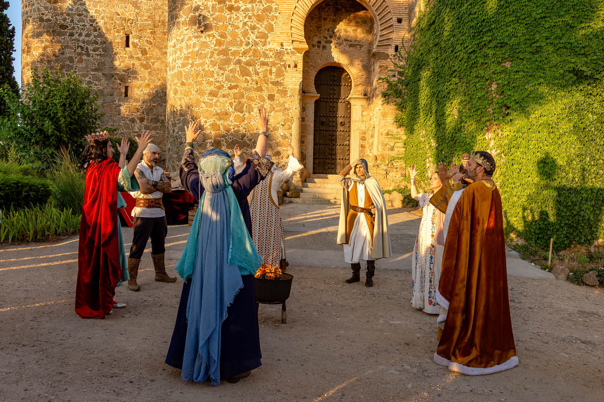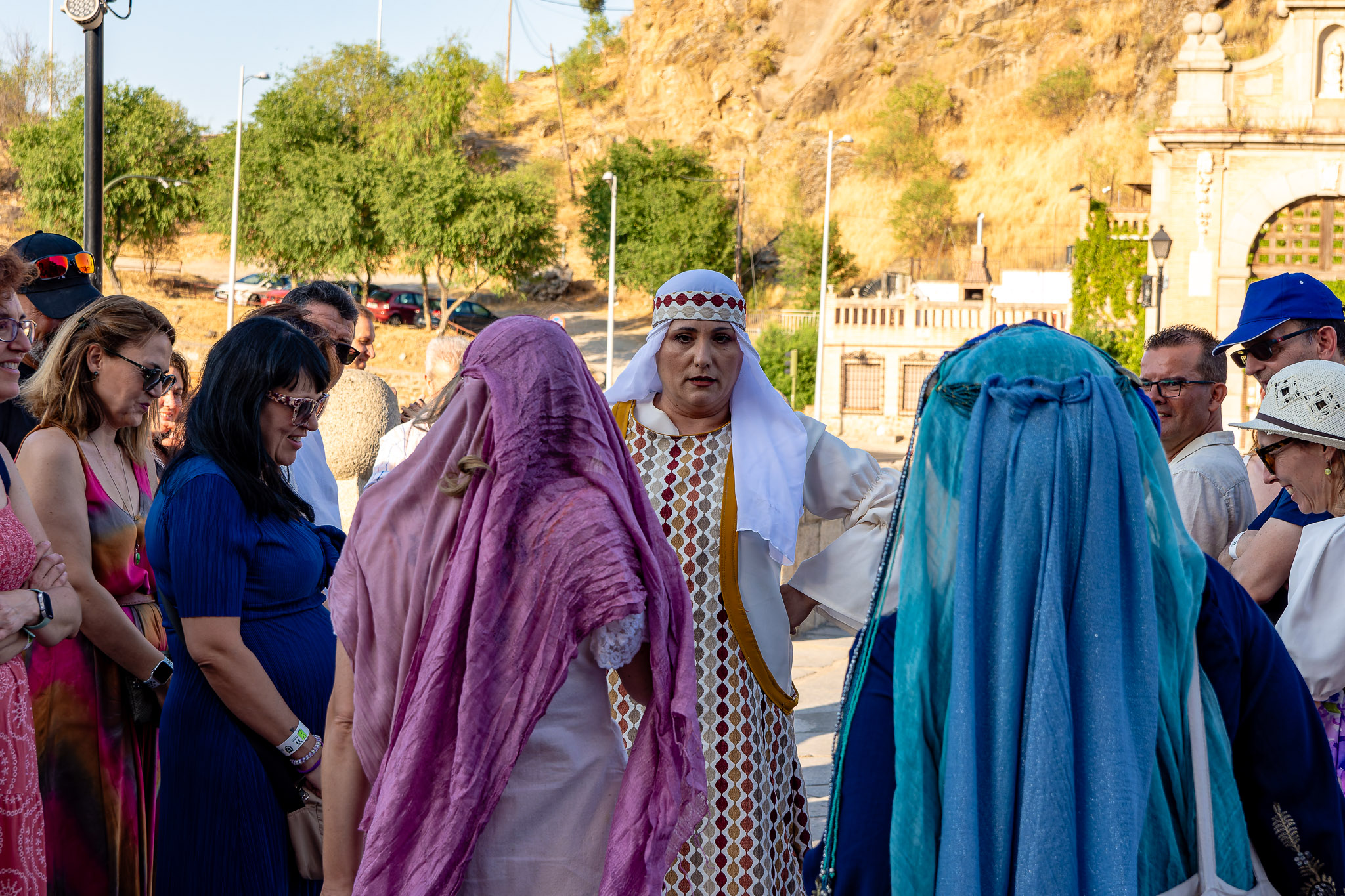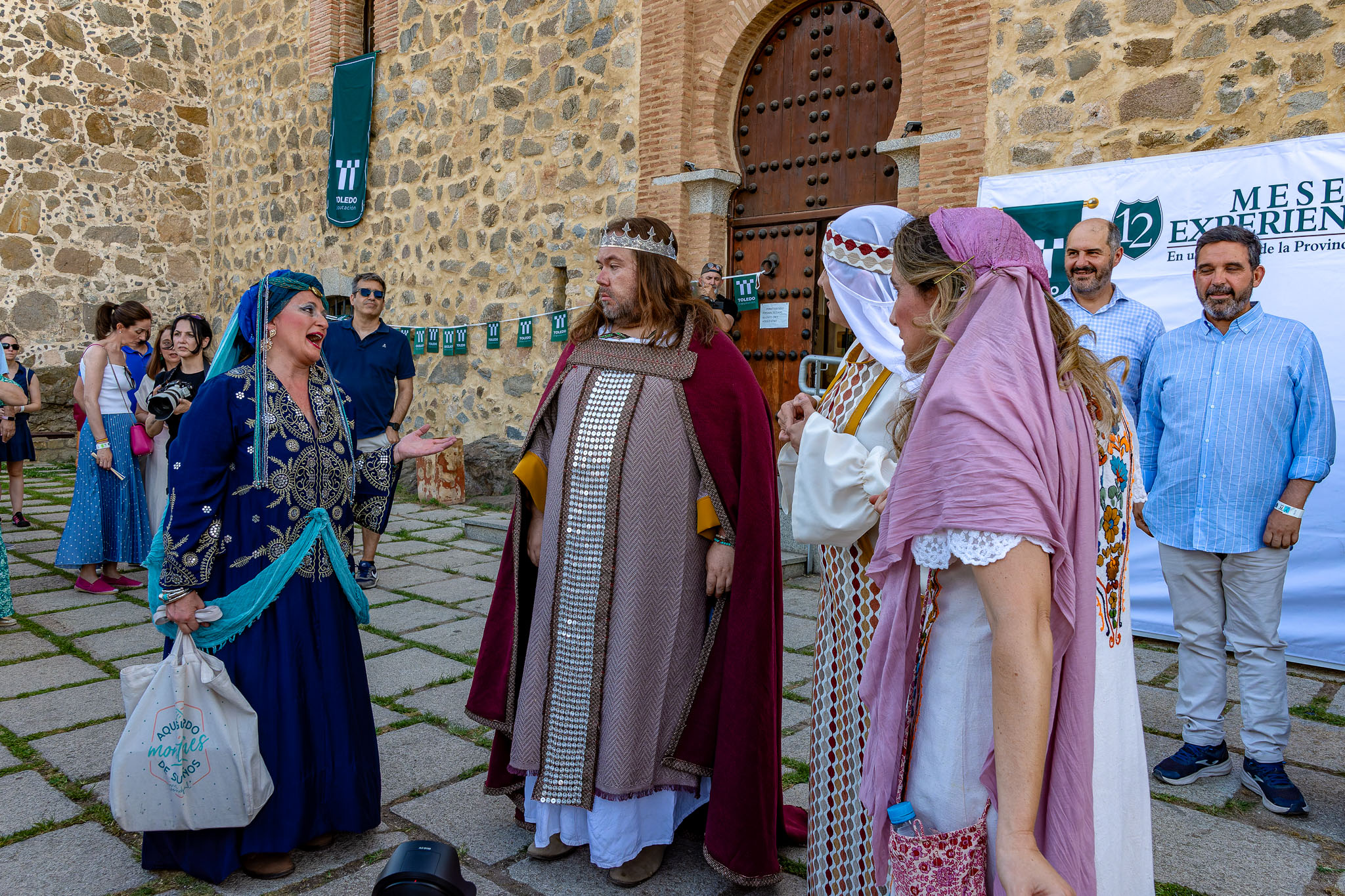 En el puente daba comienzo la visita teatralizada, tres mujeres «Inés»; «Zaida» y «Raquel», qué, en la búsqueda de sus orígenes, nos llevaron de viaje por tres épocas diferentes, de la mano de tres reyes, Alfonso VI junto a Rodrigo Díaz de Vivar, El Cid, que pide justicia para sus hijas por las vilezas cometidas por los Infantes de Carrión; o la prohibida historia de amor de Alfonso VIII con la judía Raquel, «Rahel la Fermosa», junto a las aguas del Tajo; y Zaida, que junto a Alfonso X El sabio, echará al fuego los misterios que ofrece el castillo., nos llevaron, a través de sus historias, al Castillo de San Servando, una inmersión en la historia y las leyendas del castillo, de la mano de la Compañía de Teatro Atenea.