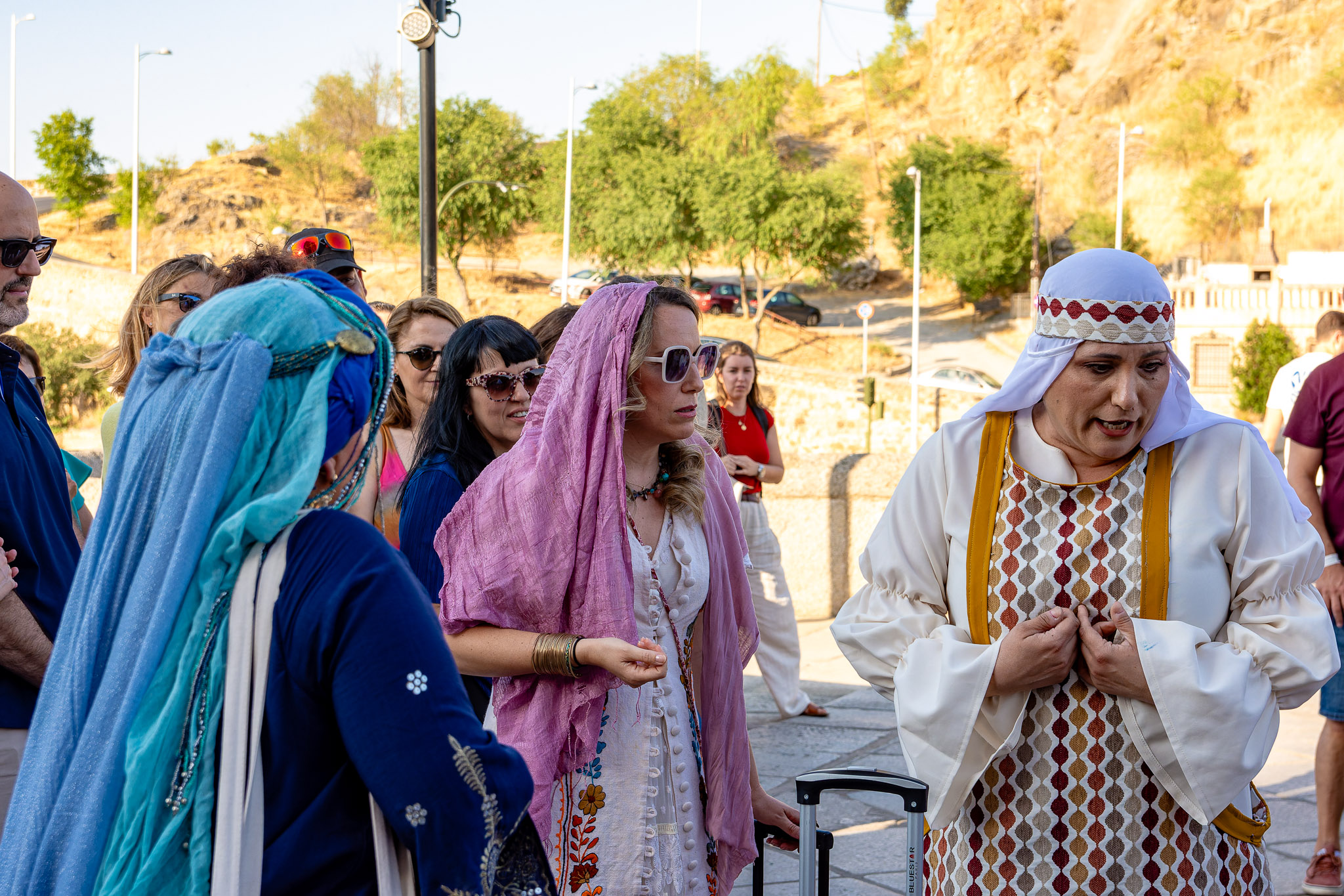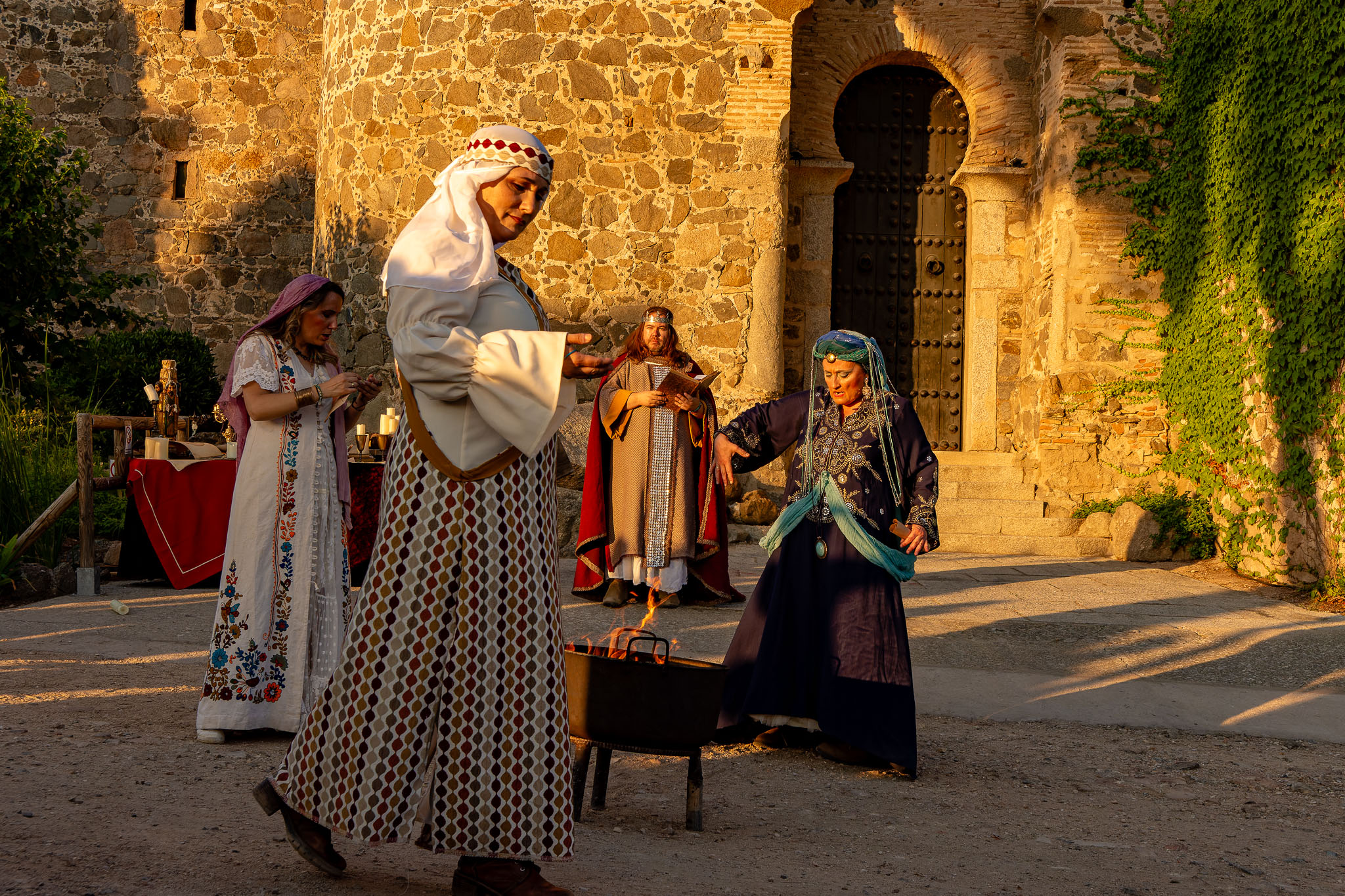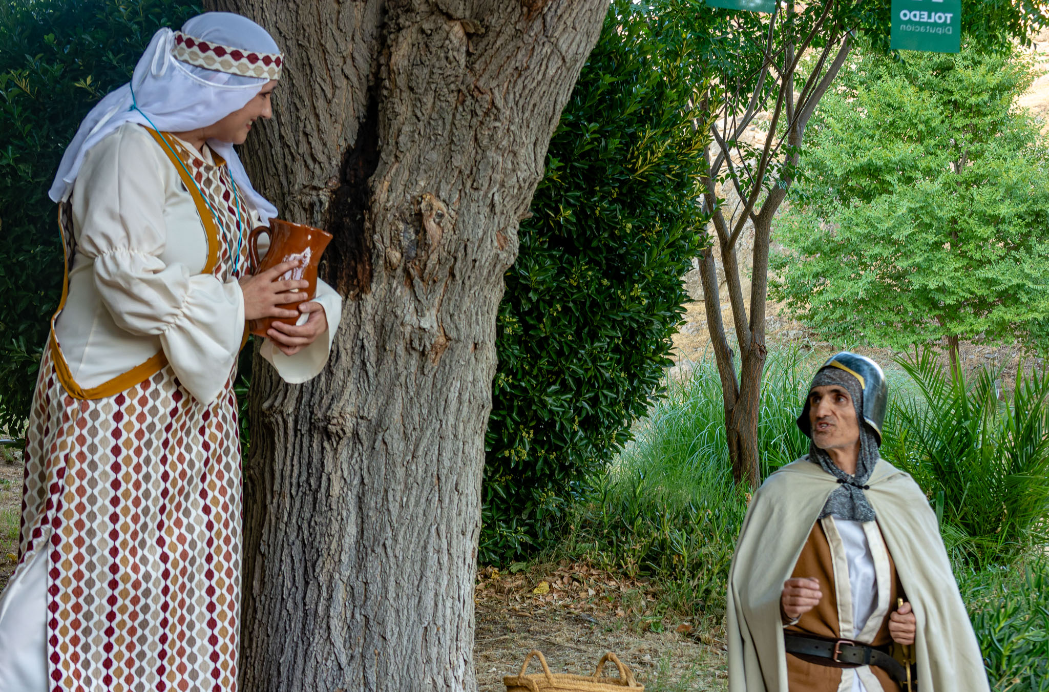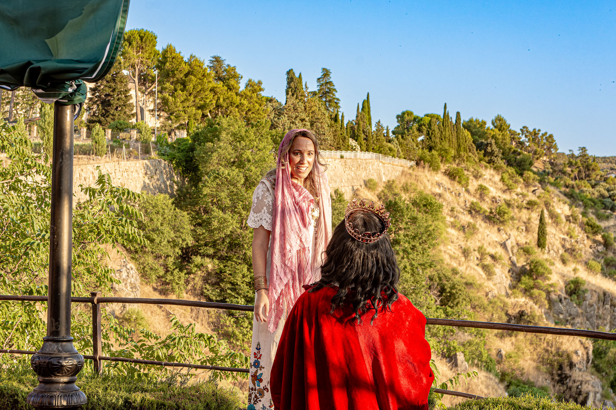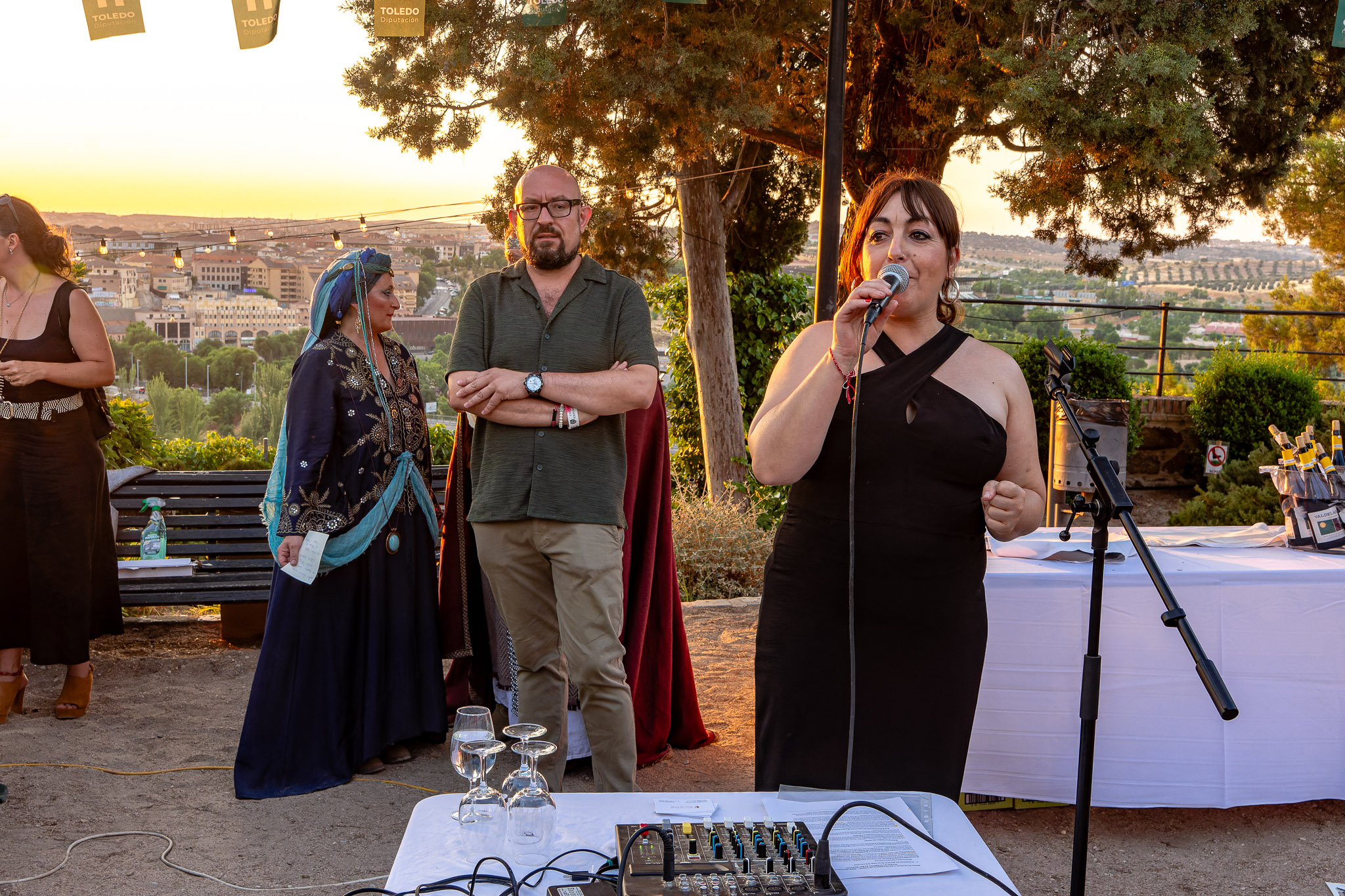 En el puente daba comienzo la visita teatralizada, tres mujeres «Inés»; «Zaida» y «Raquel», qué, en la búsqueda de sus orígenes, nos llevaron de viaje por tres épocas diferentes, de la mano de tres reyes, Alfonso VI junto a Rodrigo Díaz de Vivar, El Cid, que pide justicia para sus hijas por las vilezas cometidas por los Infantes de Carrión; o la prohibida historia de amor de Alfonso VIII con la judía Raquel, «Rahel la Fermosa», junto a las aguas del Tajo; y Zaida, que junto a Alfonso X El sabio, echará al fuego los misterios que ofrece el castillo., nos llevaron, a través de sus historias, al Castillo de San Servando, una inmersión en la historia y las leyendas del castillo, de la mano de la Compañía de Teatro Atenea.