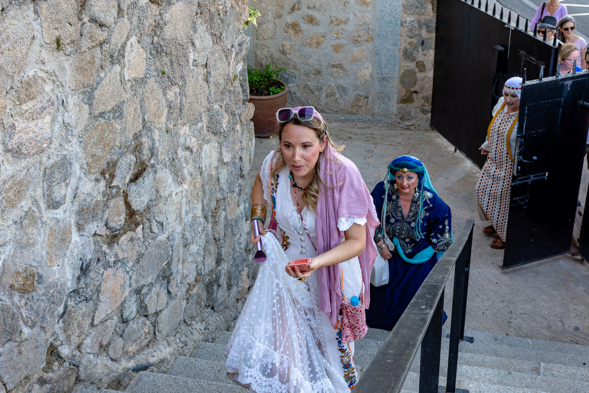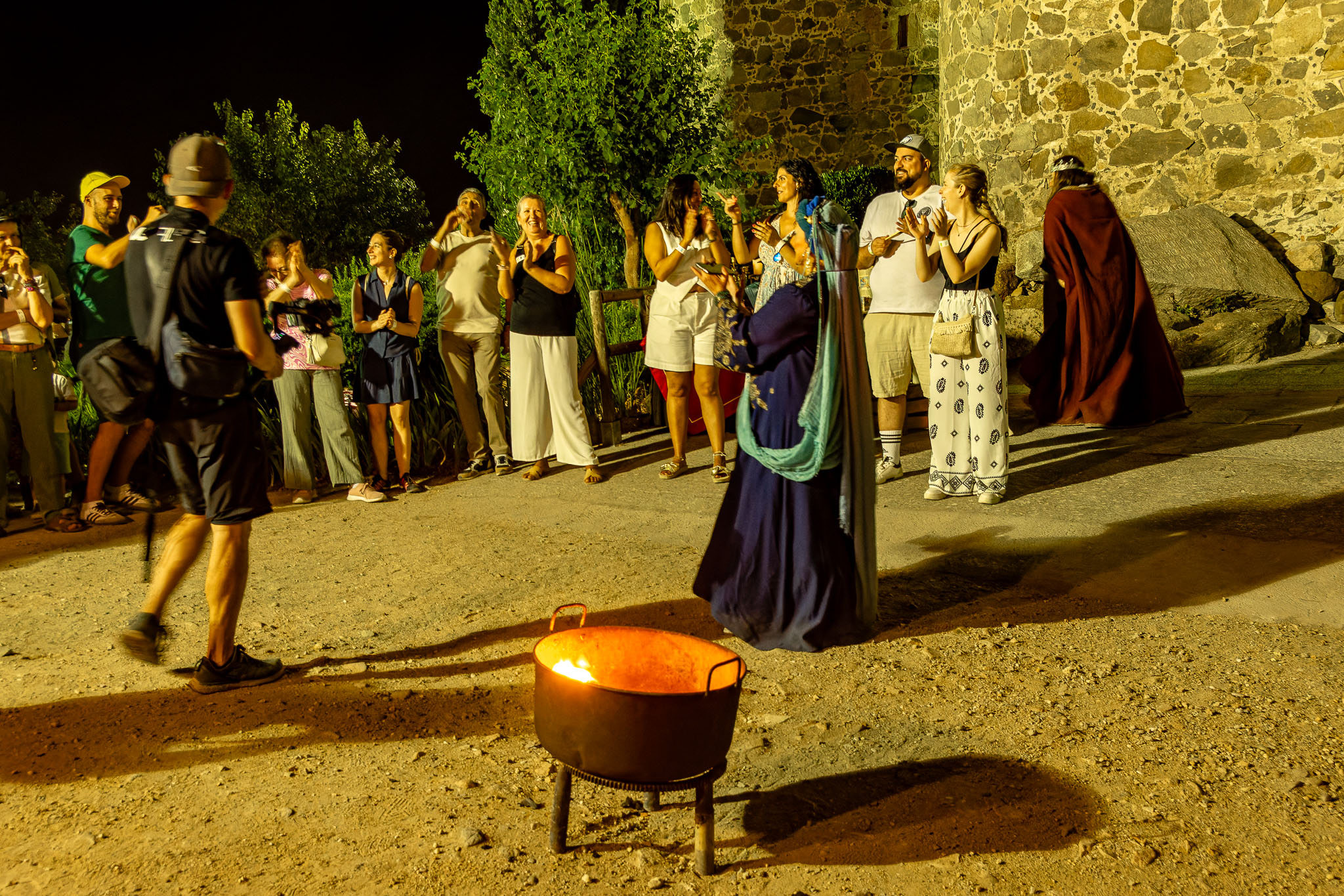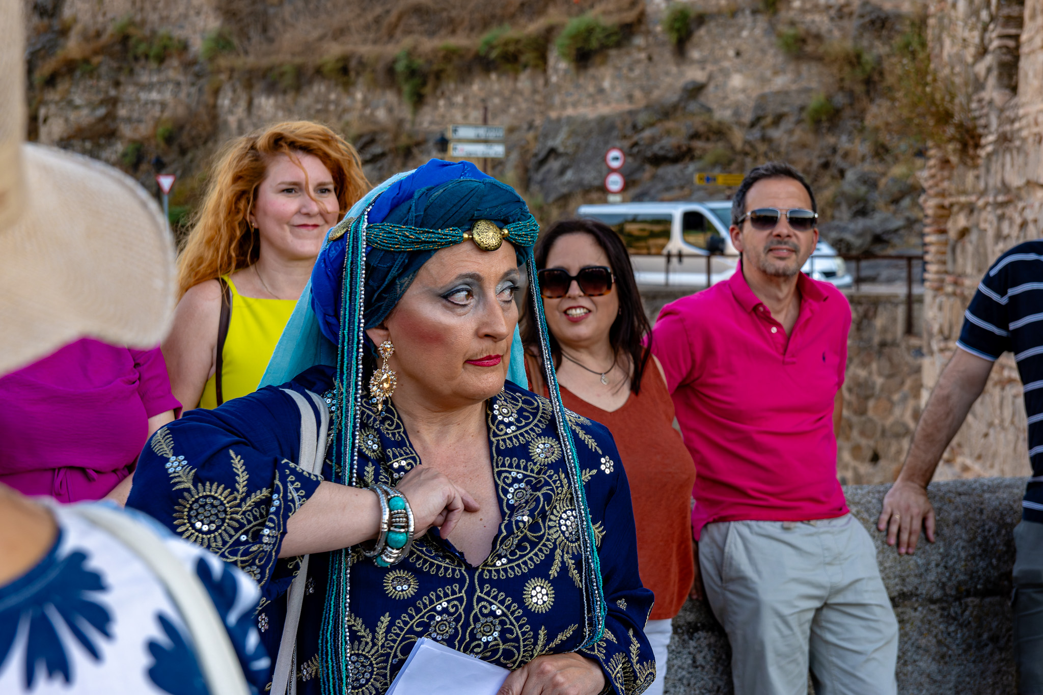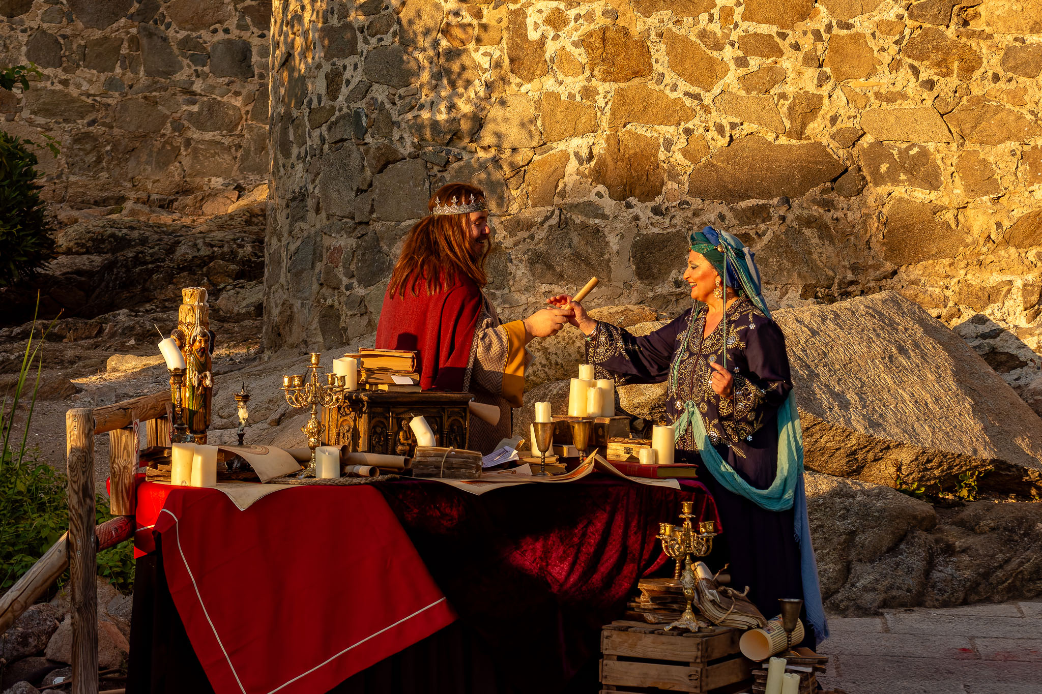 En el puente daba comienzo la visita teatralizada, tres mujeres «Inés»; «Zaida» y «Raquel», qué, en la búsqueda de sus orígenes, nos llevaron de viaje por tres épocas diferentes, de la mano de tres reyes, Alfonso VI junto a Rodrigo Díaz de Vivar, El Cid, que pide justicia para sus hijas por las vilezas cometidas por los Infantes de Carrión; o la prohibida historia de amor de Alfonso VIII con la judía Raquel, «Rahel la Fermosa», junto a las aguas del Tajo; y Zaida, que junto a Alfonso X El sabio, echará al fuego los misterios que ofrece el castillo., nos llevaron, a través de sus historias, al Castillo de San Servando, una inmersión en la historia y las leyendas del castillo, de la mano de la Compañía de Teatro Atenea.