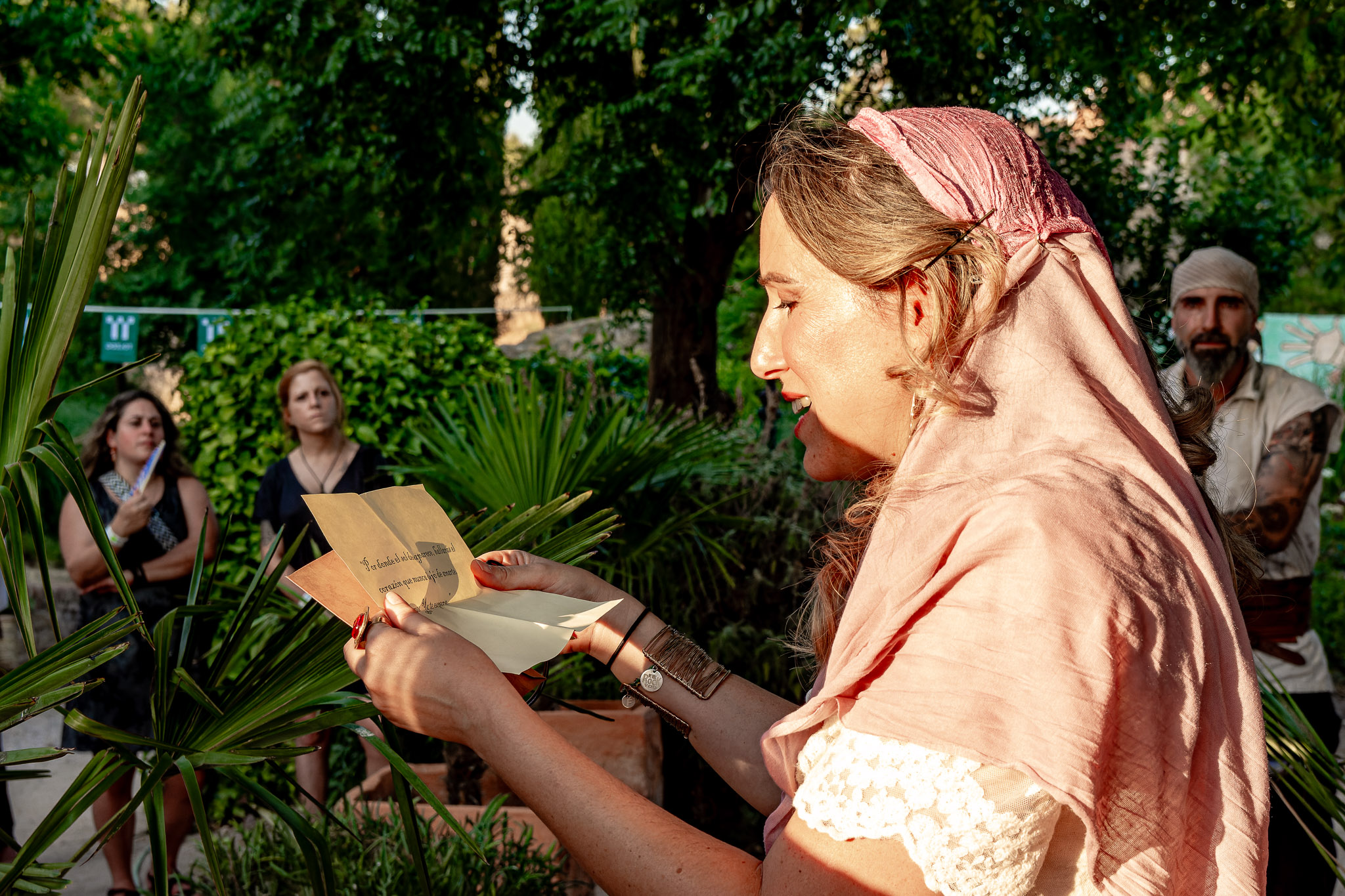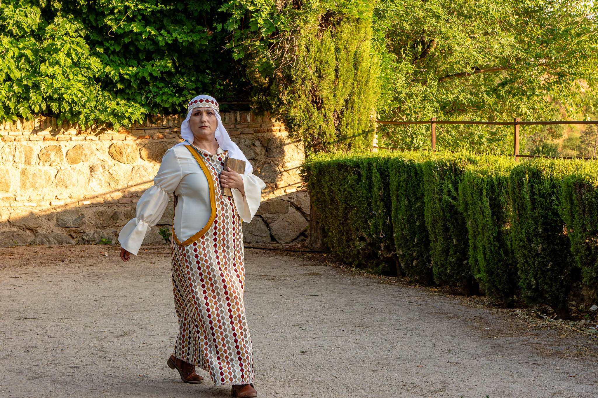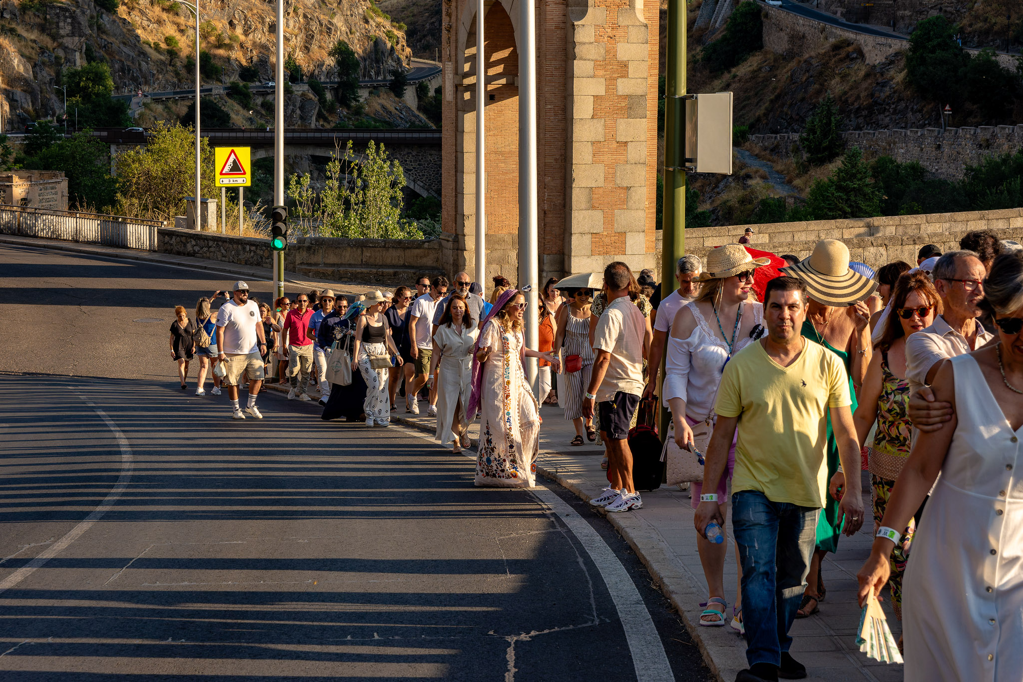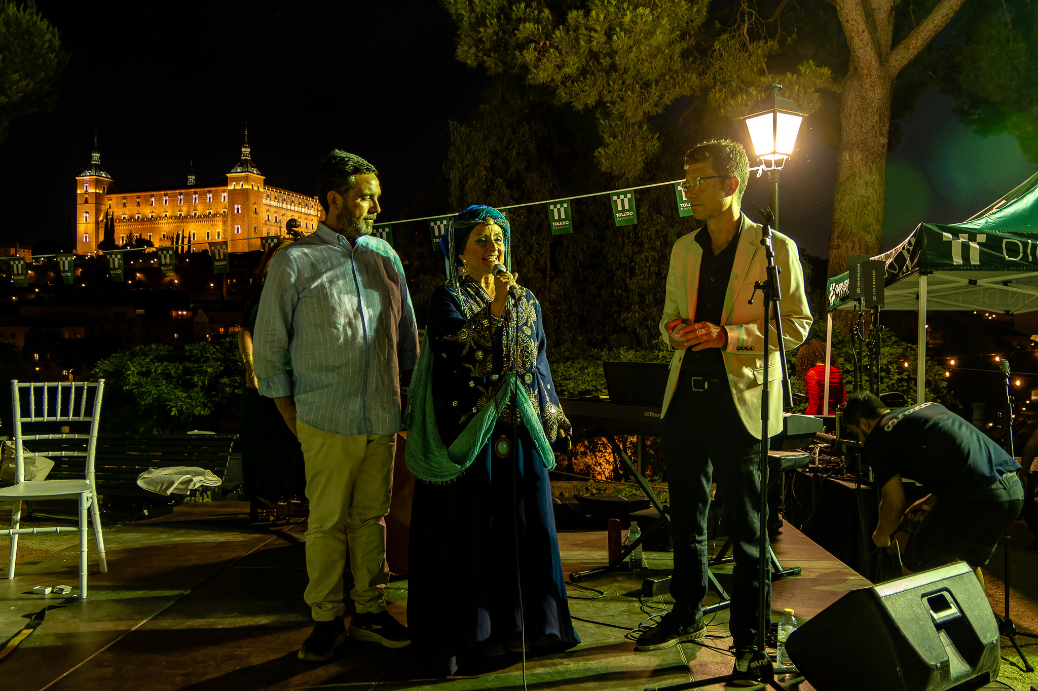 En el puente daba comienzo la visita teatralizada, tres mujeres «Inés»; «Zaida» y «Raquel», qué, en la búsqueda de sus orígenes, nos llevaron de viaje por tres épocas diferentes, de la mano de tres reyes, Alfonso VI junto a Rodrigo Díaz de Vivar, El Cid, que pide justicia para sus hijas por las vilezas cometidas por los Infantes de Carrión; o la prohibida historia de amor de Alfonso VIII con la judía Raquel, «Rahel la Fermosa», junto a las aguas del Tajo; y Zaida, que junto a Alfonso X El sabio, echará al fuego los misterios que ofrece el castillo., nos llevaron, a través de sus historias, al Castillo de San Servando, una inmersión en la historia y las leyendas del castillo, de la mano de la Compañía de Teatro Atenea.