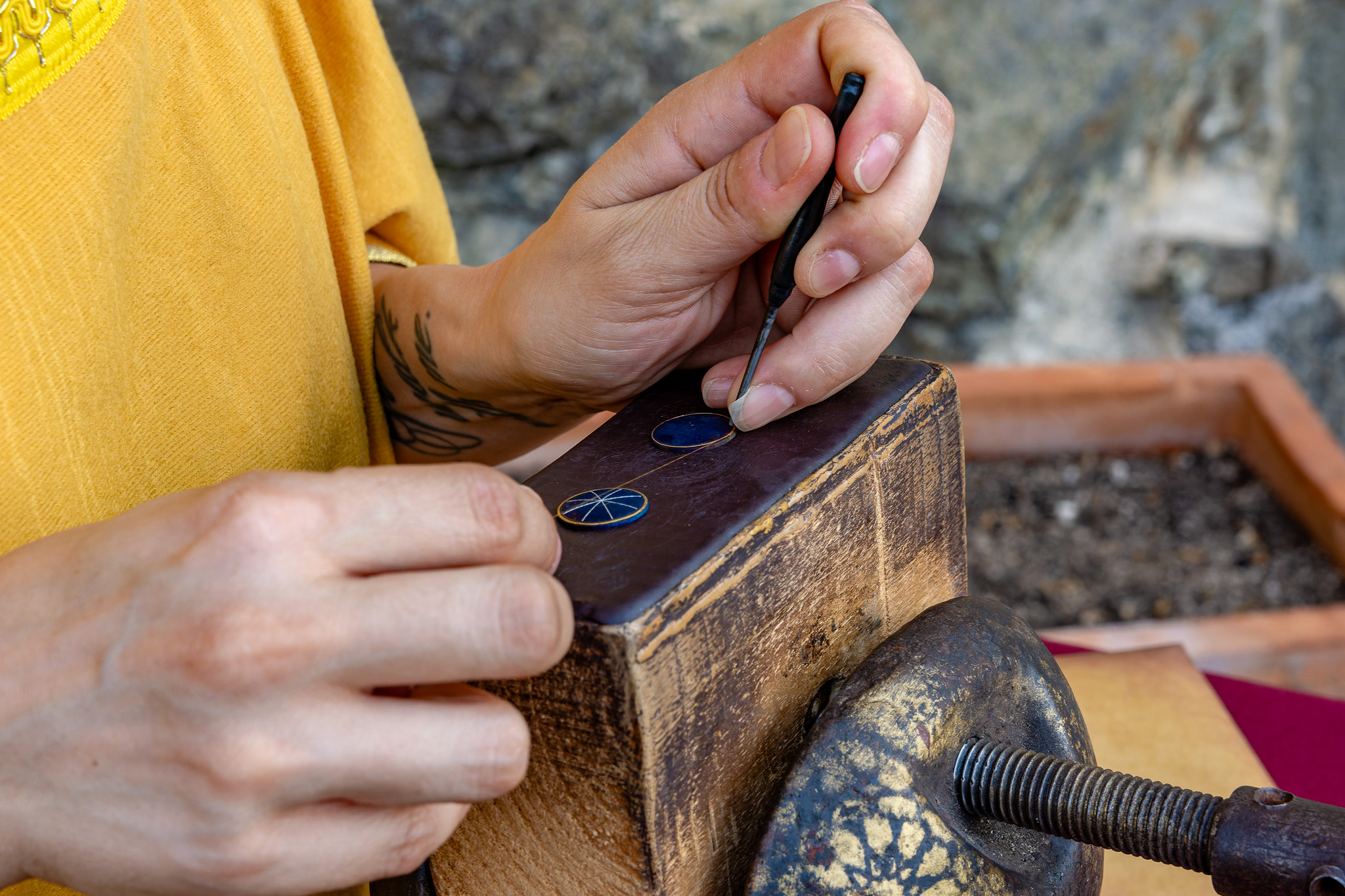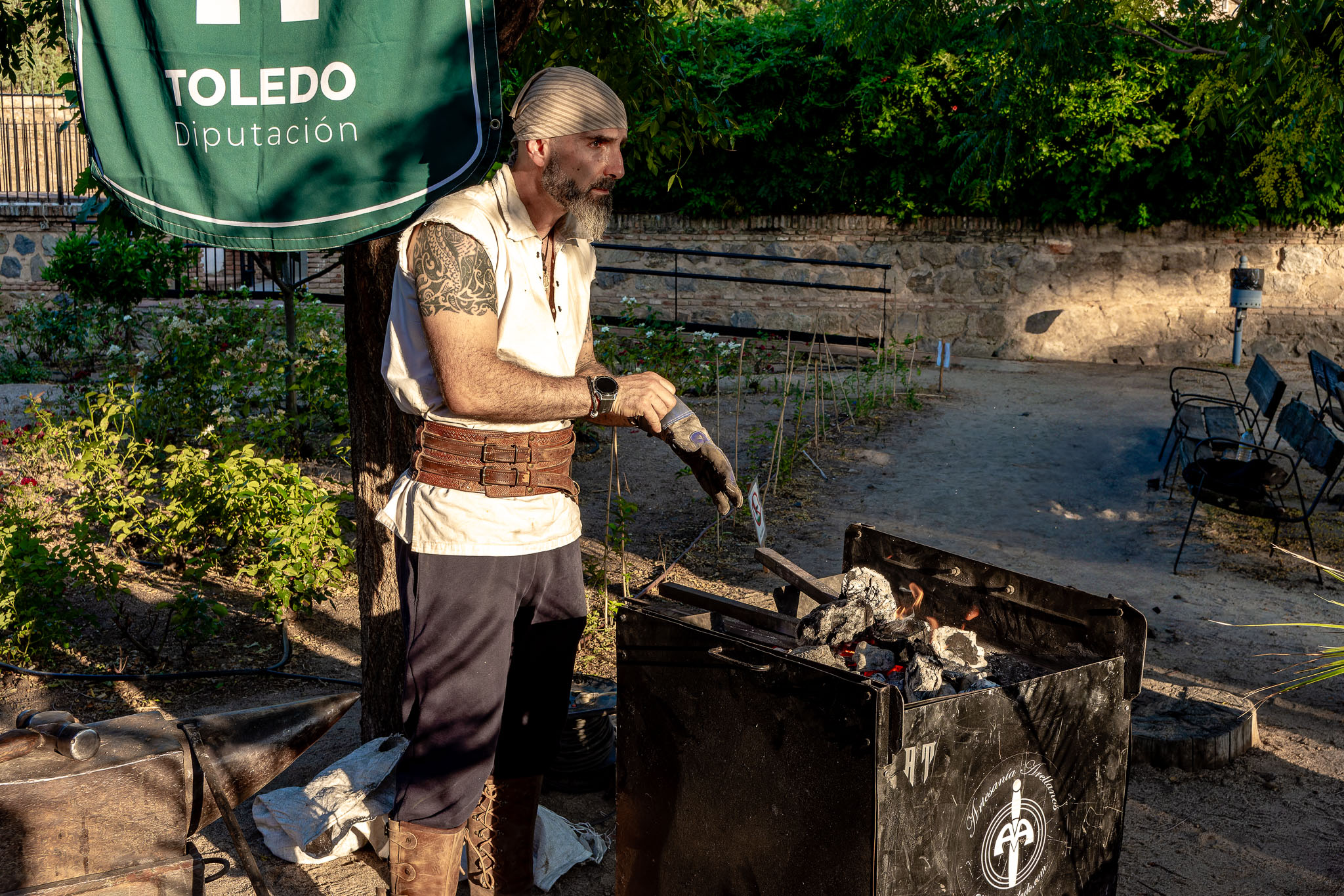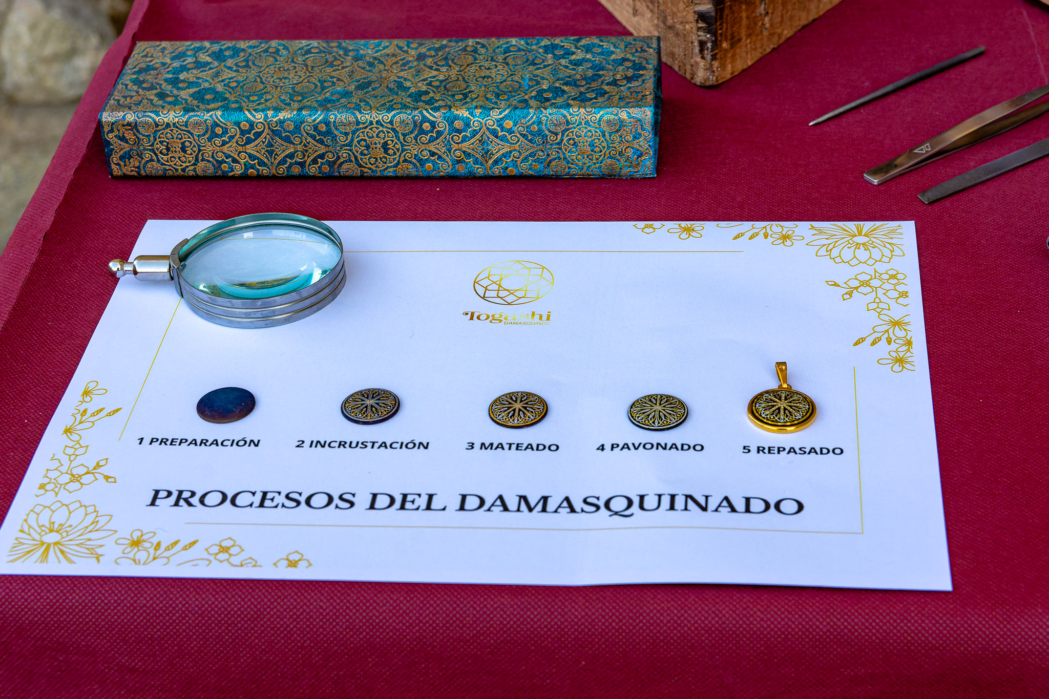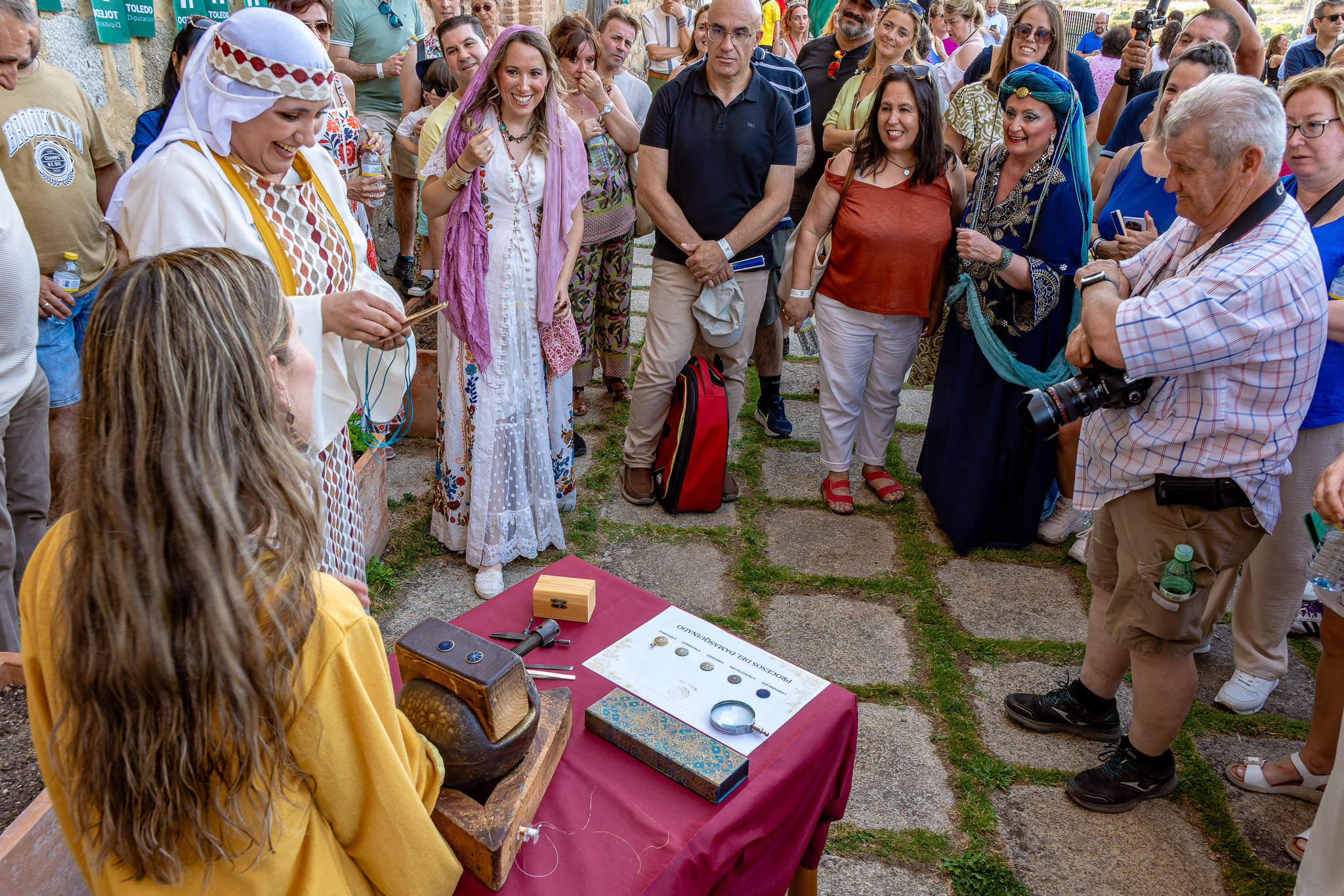 Los visitantes también tuvieron la oportunidad de presenciar una demostración de Damasquinado a cargo de Raquel de la Torre, de Togashi Damasquinos, y una muestra de Espadería por Toni Arellano, uno de los últimos espaderos toledanos con una tradición a sus espaldas de más de cinco generaciones, mostrando la rica tradición artesanal toledana.