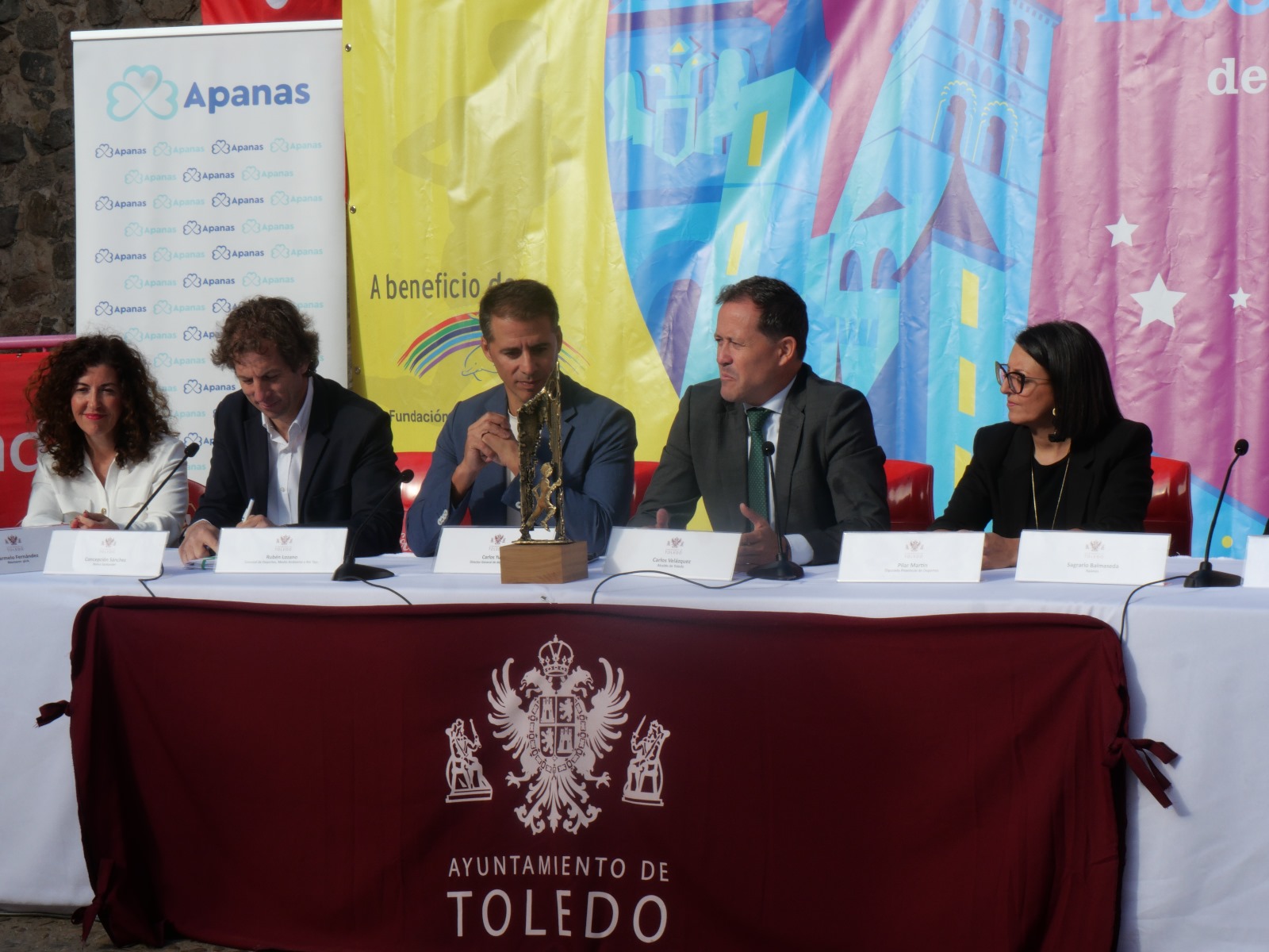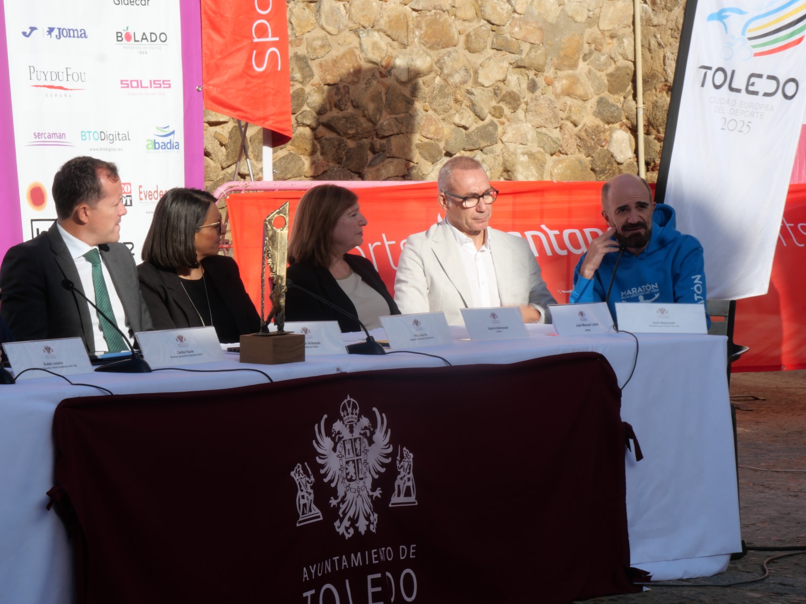 El concejal de Deportes, Rubén Lozano, ha acompañado al alcalde, Carlos Velázquez, en la presentación oficial del evento, realizada hoy en el Patio de Armas de la Puerta de Bisagra. También participaron representantes de la Diputación, del patrocinador Banco Santander y de la marca deportiva Joma.