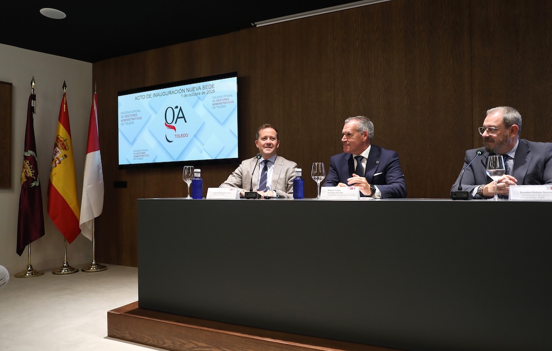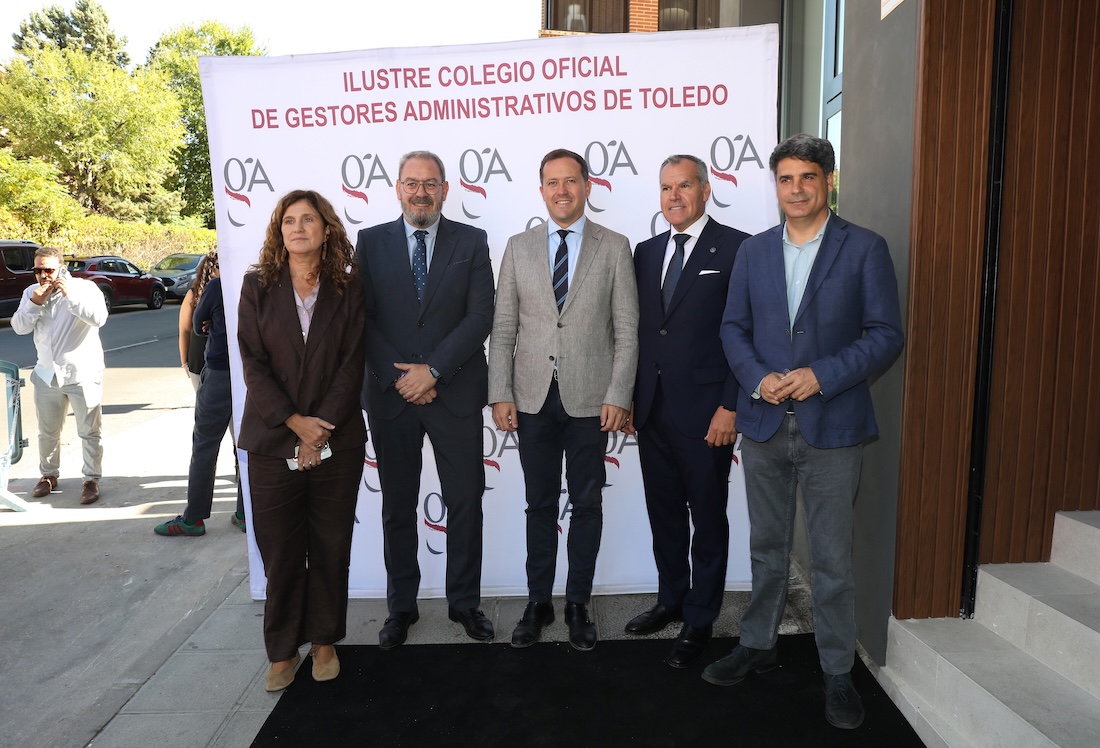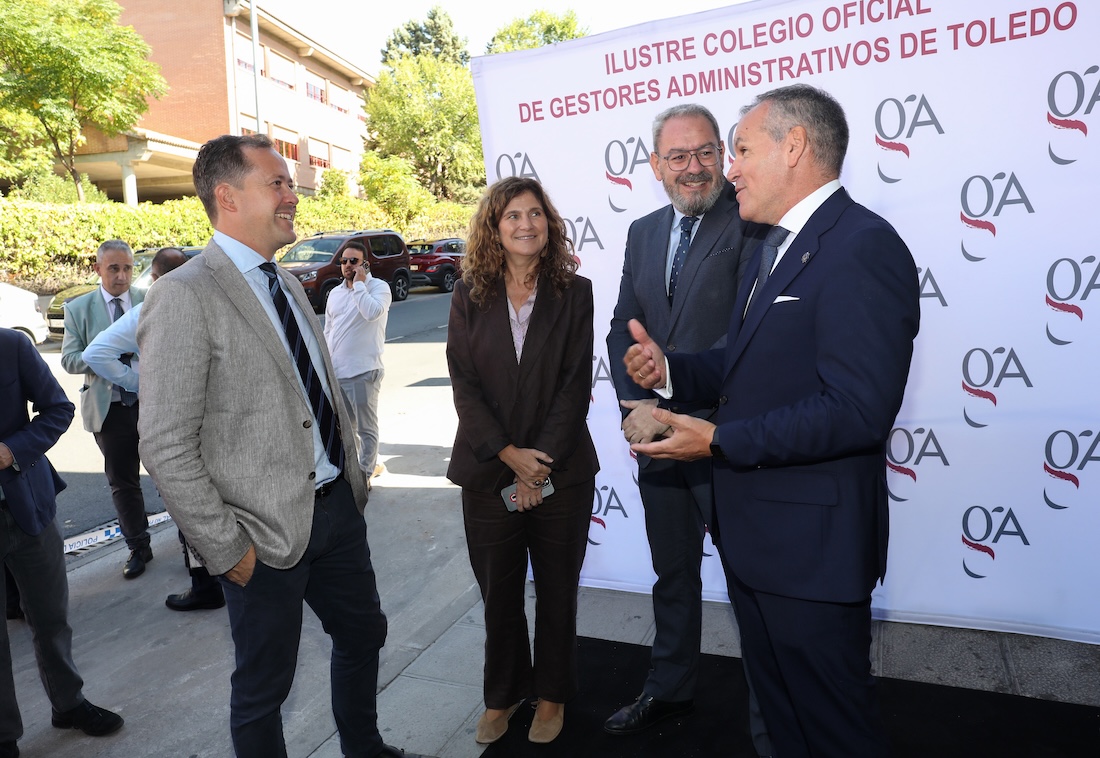 El alcalde de Toledo, Carlos Velázquez, asistió a la inauguración de la nueva sede del Colegio Oficial de Gestores Administrativos en el Paseo de Bachilleres, acompañado por el presidente de la entidad, Miguel Ángel Herrera.