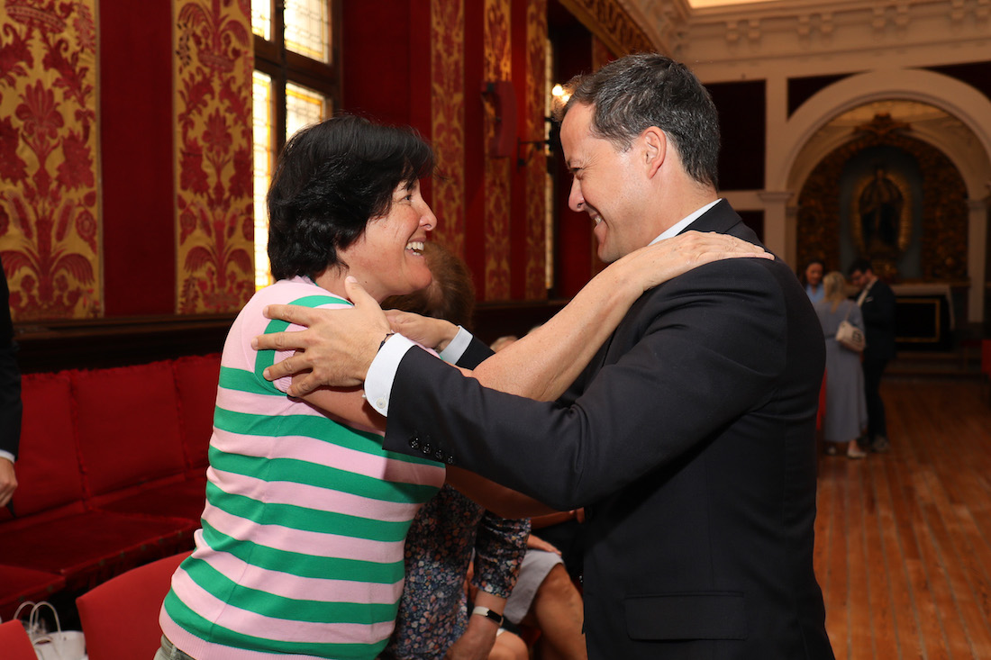 El alcalde de Toledo, Carlos Velázquez, recibió hoy en el Ayuntamiento a las delegaciones de Agén (Francia) y Aquisgrán (Alemania), dos ciudades hermanadas con Toledo, en el marco de la celebración del Corpus Christi.