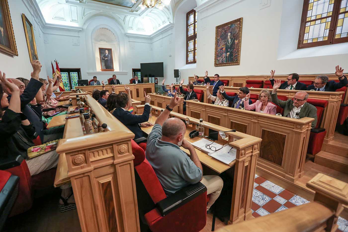El alcalde Carlos Velázquez destaca la voluntad de concordia y de encontrar acuerdos por parte de todos los grupos. Durante el Pleno del Ayuntamiento de Toledo se han aprobado seis puntos, cinco de ellos por unanimidad de los 25 concejales con representación municipal en el Consistorio.