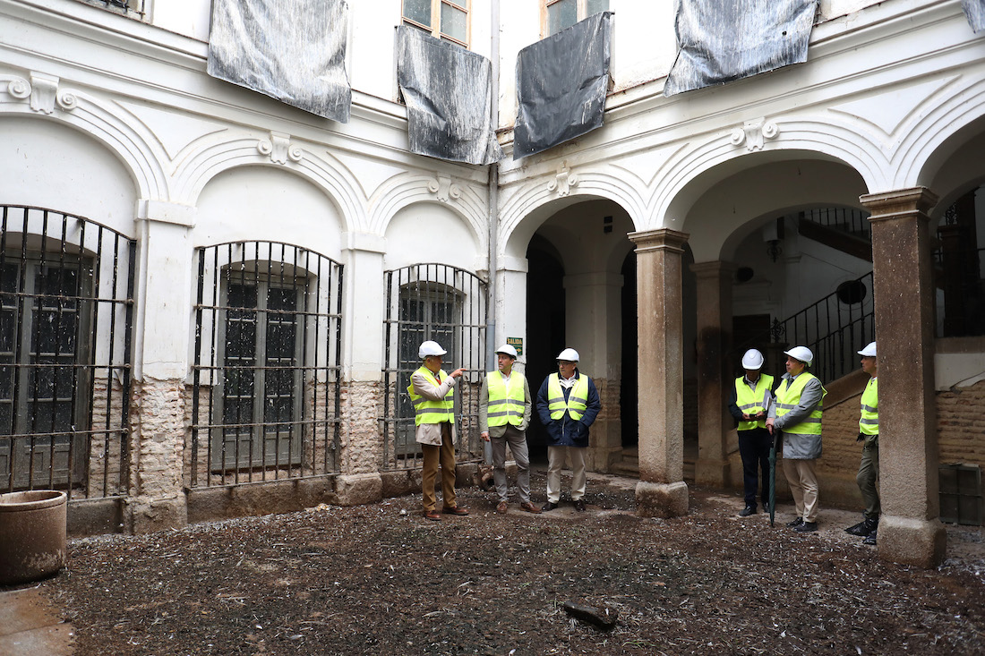 El alcalde de Toledo, Carlos Velázquez, ha realizado hoy la primera visita técnica al histórico edificio Abdón de Paz, acompañado por el concejal de Turismo, Vivienda y Relaciones con la UCLM, José Manuel Velasco, el director de la Real Academia de Bellas Artes y Ciencias Históricas de Toledo, Jesús Carrobles, y representantes de la Diputación Provincial de Toledo.