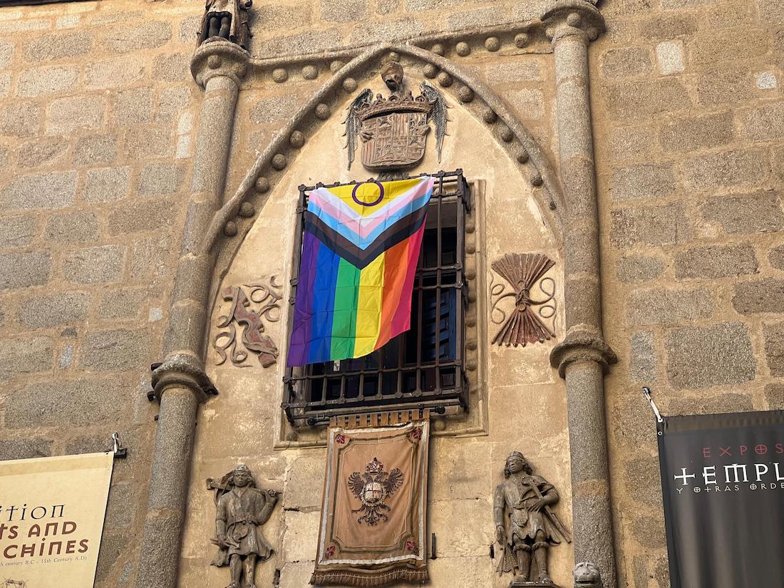 La bandera del colectivo LGTBi+ ya ondea en la sede el Grupo Municipal Socialista con motivo de la celebración del Día del Orgullo y del inicio, el próximo viernes, de las actividades de la semana cultural Toledo Entiende 2024.