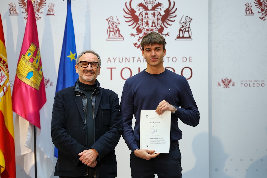 El concejal de Planeamiento Urbanístico, Florentino Delgado, hizo entrega de los premios de la I Edición del concurso ‘Toledo Por·Venir’ , cuyo primer premio recayó en Álvaro Bueno por su proyecto ‘El Rompecabezas de Madera’, centrado en el convento de Santa Clara y su entorno en el Casco Histórico.