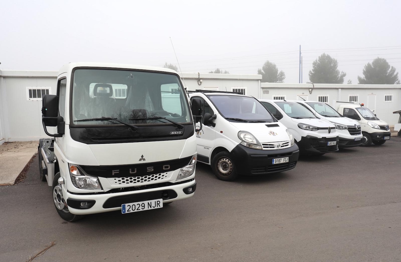 Se trata de un camión portacontenedores, un camión para el transporte de vallas y tres furgonetas, dos de uso general y una específica para el servicio de fontanería, equipada con un depósito interior y una pequeña cuba “que permitirá atender reparaciones y averías que no están cubiertas por la empresa concesionaria Tagus”.