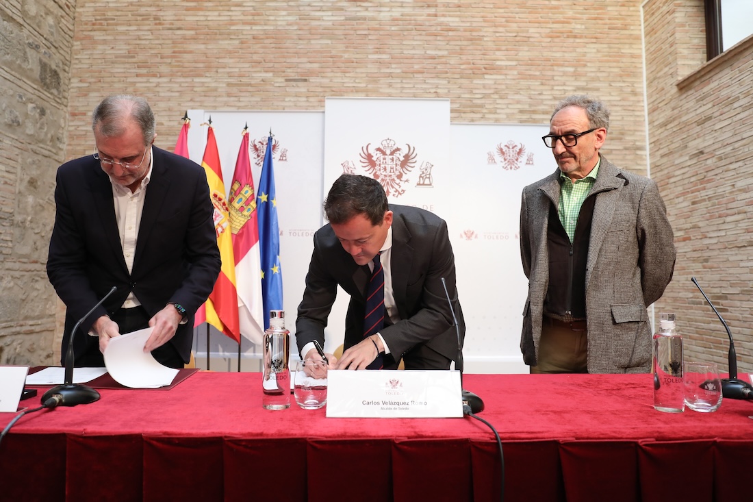 El Ayuntamiento de Toledo ha dado el primer paso en la elaboración del nuevo Plan de Ordenación Municipal (POM) con la firma del contrato con la empresa ‘Ezquiaga, Arquitectura, Sociedad y Territorio SL’, encargada de su redacción. En el acto, el alcalde Carlos Velázquez ha subrayado la importancia de este plan como herramienta clave para el crecimiento y planificación del municipio.
