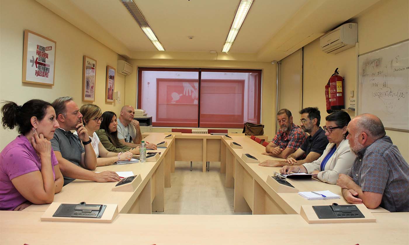 Así lo ha explicado Txema Fernández, candidato a la Alcaldía de Toledo por la coalición rojimorada, en la reunión que ha mantenido este miércoles, 3 de mayo, en la sede del sindicato con el secretario provincial de CCOO, Federico Pérez, y la responsable de Organización, Mayte García, acompañado por Olga Ávalos, Alejandro Ávila y Santiago Neira, miembros de la candidatura de Unidas Izquierda Unida – Podemos,