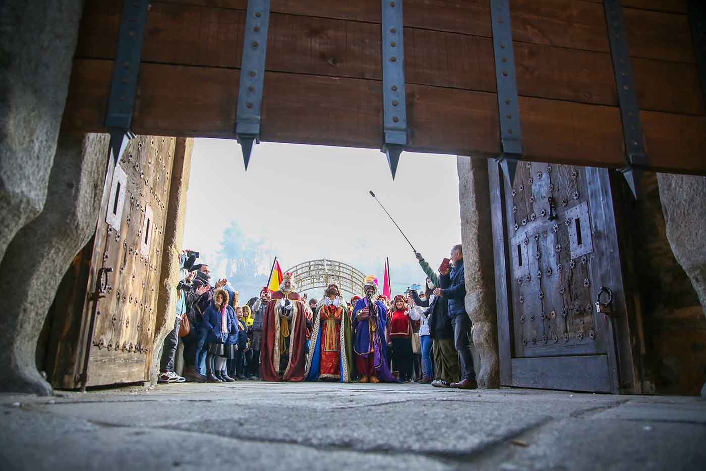 Las trompetas dieron paso al izado del rastrillo del torreón recuperado por el Ayuntamiento de Toledo a través de la Escuela Municipal de Empleo y así, Melchor, Gaspar y Baltasar hicieron su entrada triunfal en la ciudad a la que llegan, llenos de ilusión y cargados de regalos y de sorpresas para los más pequeños de Toledo, tal y como dijo Melchor.