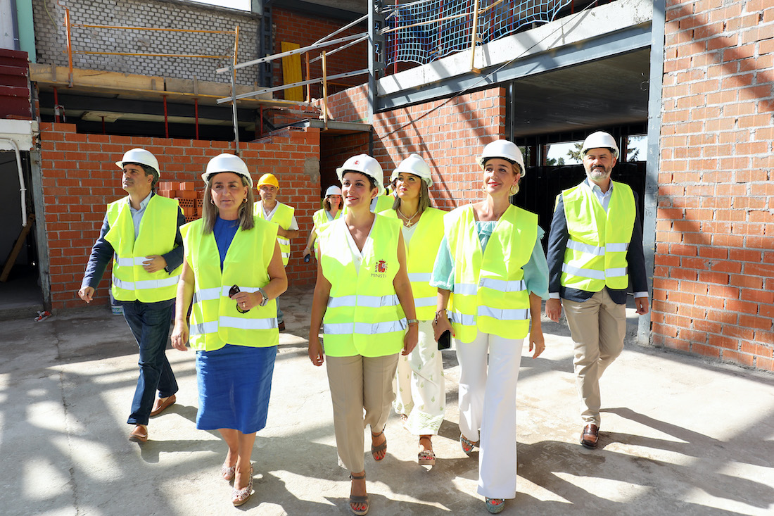 La vicealcaldesa de Toledo, Inés Cañizares, junto al concejal de Deportes, Rubén Lozano, y varios miembros de la Corporación Municipal, acompañaron a la ministra de Vivienda y Agenda Urbana, Isabel Rodríguez, en su visita a las obras del Pabellón de la Escuela Central de Educación Física.