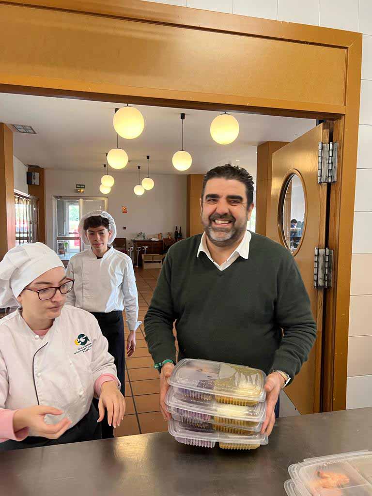 Tomás Palencia ha señalado que todos los alumnos y profesores de la Escuela han trabajado desde el lunes “pelando verduras y patatas, y preparando todo lo necesario para que los menús salieran lo mejor posible”. “Todo se ha hecho aquí y solo puedo dar la enhorabuena a todos por haberlo conseguido. “Gracias a Coca Cola por vuestro gran apoyo”.