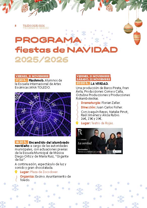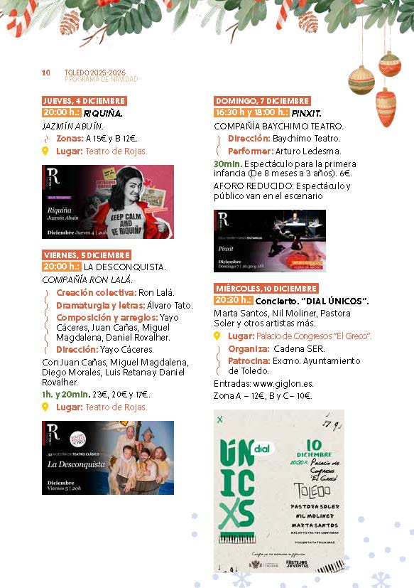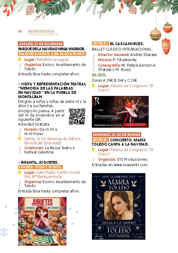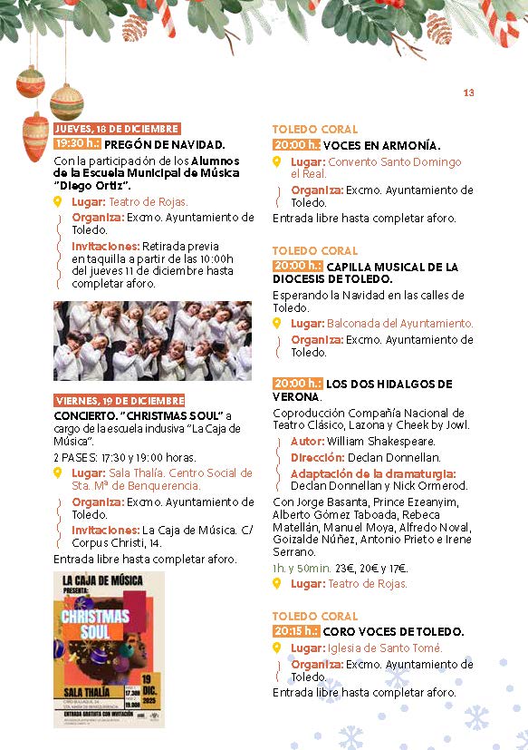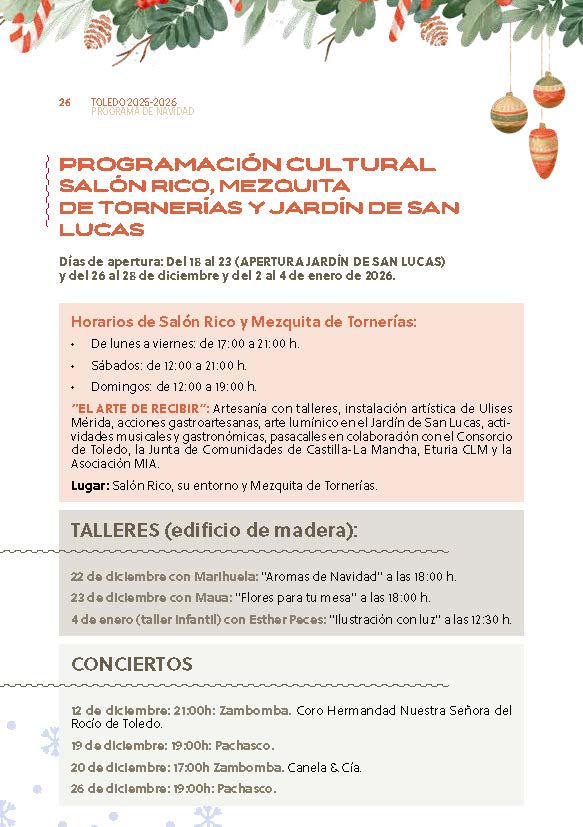 El Ayuntamiento de Toledo ha señalado que estas fiestas representan una invitación a disfrutar de la ciudad, a compartir, a sonreír y a reencontrarse. En nombre del área de Festejos, ha transmitido sus mejores deseos de una Feliz Navidad y un próspero año 2026, confiando en que Toledo brille más que nunca gracias a la alegría de su gente.