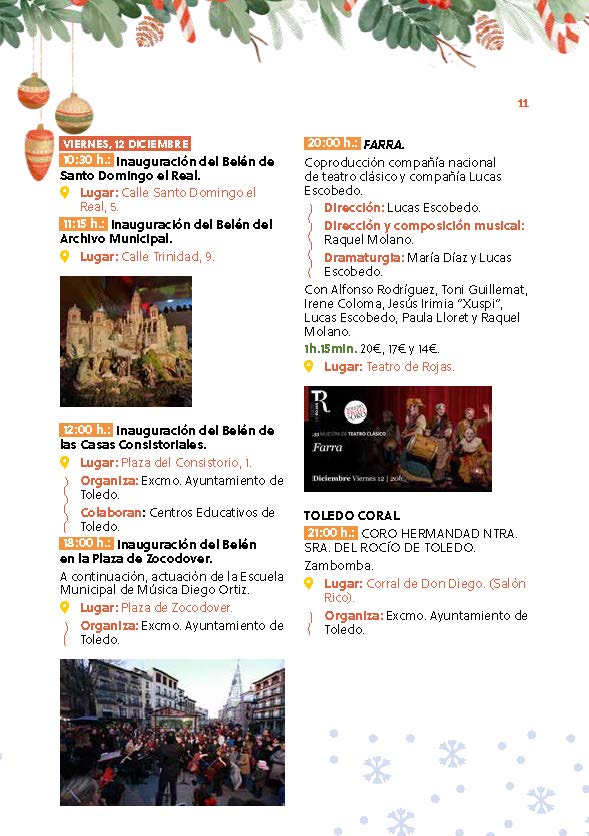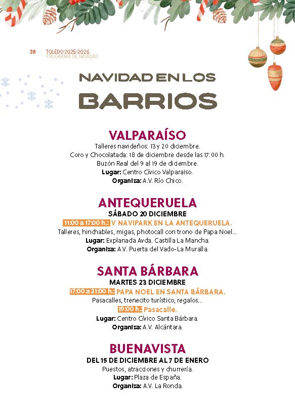 Toledo contará con más iluminación navideña que nunca, extendida a todos los barrios, donde también se desarrollarán actuaciones infantiles, talleres, conciertos y diversas propuestas pensadas para disfrutar cerca de casa y en compañía del vecindario.