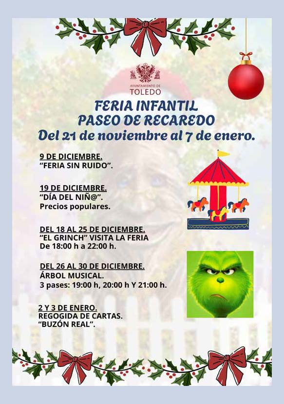 El Recinto Ferial de Santa María de Benquerencia acogerá nuevamente el Circo de la Navidad, un espacio de magia y diversión para toda la familia. Asimismo, los más pequeños podrán disfrutar un año más de la Feria Infantil en el Paseo de Recaredo, de la pista de hielo en el paseo de Sisebuto, de talleres de arte y creatividad y del tradicional carrusel instalado en la plaza del Ayuntamiento.