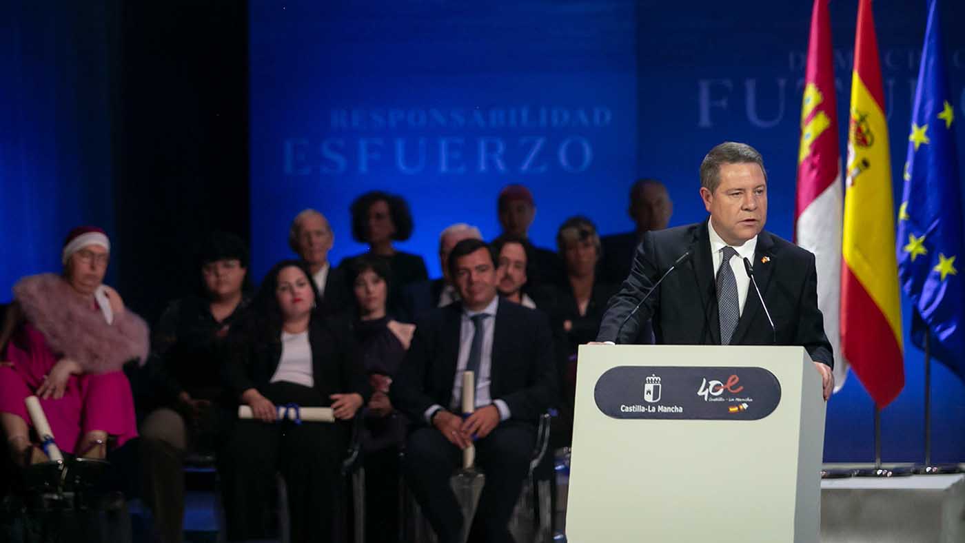 Así lo han recalcado en su discurso, tras recibir la Medalla de Oro en el acto institucional celebrado en el Gran Teatro de Manzanares (Ciudad Real), en el que se han entregado un total de 39 reconocimientos y distinciones que corresponden con la concesión de dos medallas de Oro, el nombramiento de seis Hijas e Hijos Adoptivos, 20 Hijas e Hijos Predilectos y la concesión de once placas al Mérito Regional.