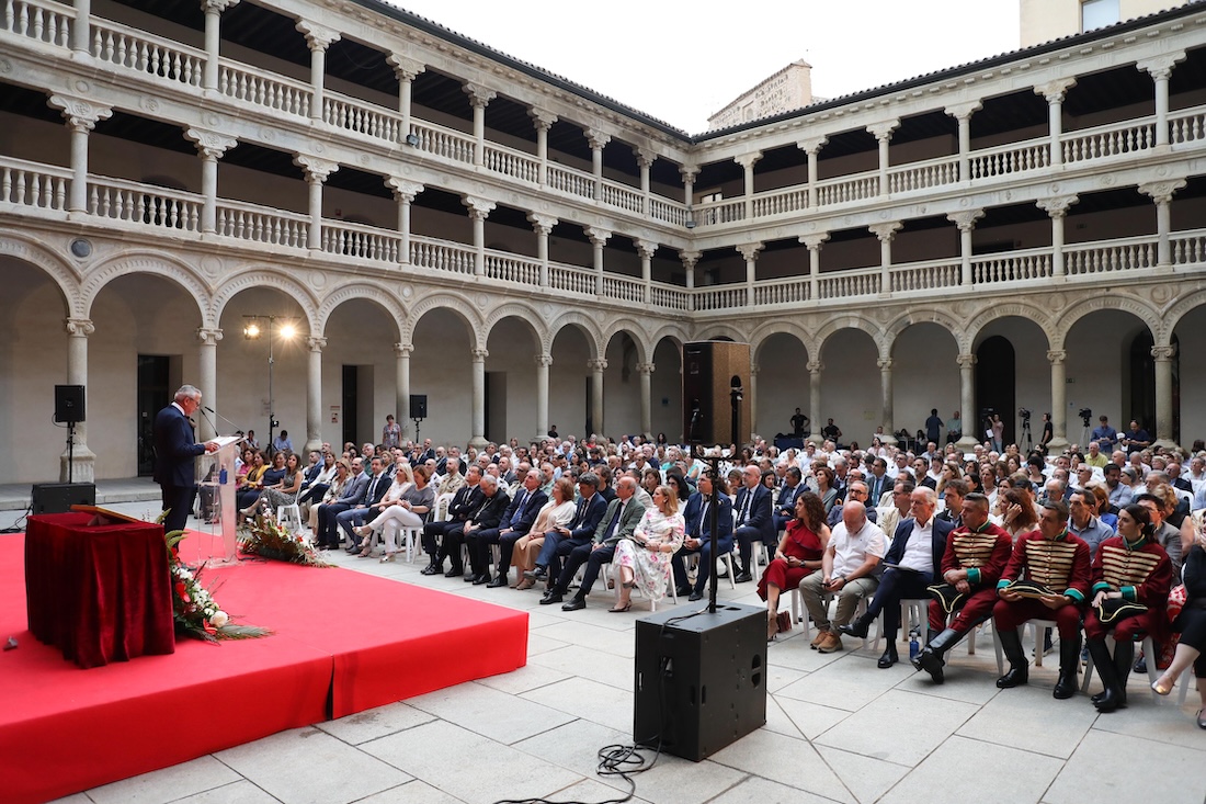 El alcalde trasladó su agradecimiento a la Universidad de Castilla-La Mancha por ceder este espacio, que acogía por primera vez el pregón del Corpus, y extendió su reconocimiento a todas las personas e instituciones implicadas en la organización de la festividad, “que convierten a Toledo, sin ningún género de dudas, en la ciudad más bonita del mundo durante esta semana”.