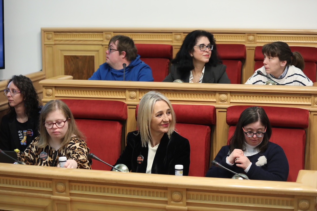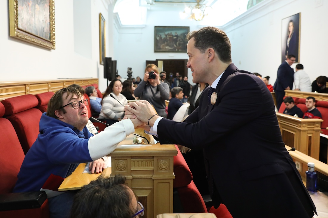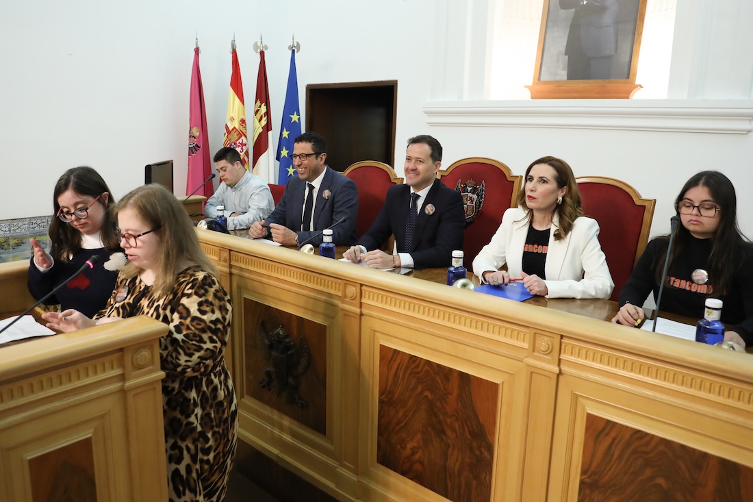 El Salón de Plenos del Ayuntamiento de Toledo ha sido escenario hoy del pleno inclusivo celebrado con motivo del Día Mundial del Síndrome de Down. En este evento han participado el alcalde de Toledo, Carlos Velázquez; la vicealcaldesa, Inés Cañizares; varios concejales de la Corporación Municipal; el director general de Discapacidad, Francisco José Armenta, y la presidenta de Down Toledo, Trinidad Escobar.