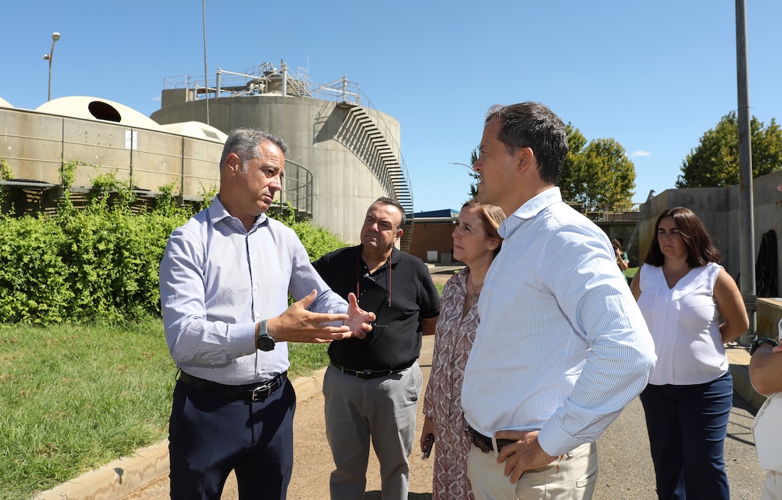 El alcalde de Toledo, Carlos Velázquez, acompañado por varios miembros del Gobierno municipal, ha visitado la estación depuradora de aguas residuales de Santa María de Benquerencia, donde se invertirán cerca de 4 millones de euros en los próximos doce meses gracias al nuevo contrato de depuración adjudicado a Aqualia.