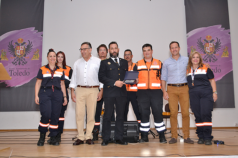 Un cuarto reconocimiento se ha entregado a la Agrupación de Voluntarios de Protección Civil y por último, el quinto reconocimiento le ha sido otorgado a Javier Martínez Muñoz, director del colegio Público Ángel del Alcázar.
