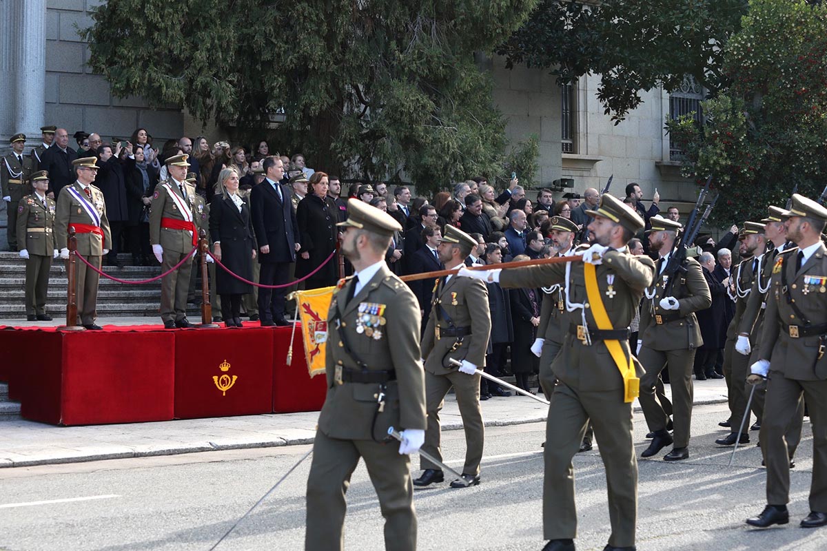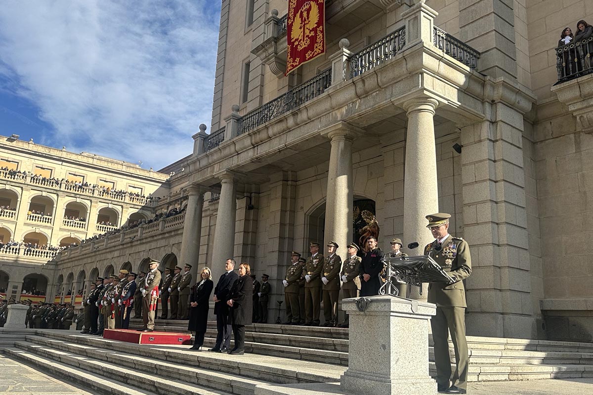 La ceremonia ha estado presidida por el general de división Javier Antonio Miragaya, director de Enseñanza, Instrucción, Adiestramiento y Evaluación del Ejército de Tierra. La jornada comenzó a primera hora de la mañana con la diana floreada, seguida del izado de bandera y una misa solemne, culminando con el desfile militar. Este año, la celebración cobra un significado especial al coincidir con la presencia continuada de la institución castrense en la ciudad desde hace 175 años.